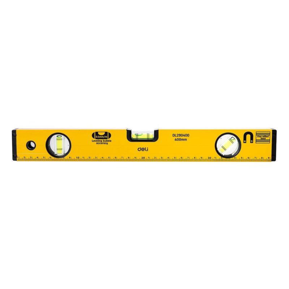 Строительный уровень Deli DL290400 400мм, алюминиевый сплав, мягкие резиновые заглушки, магнит, измерение под углом 45°