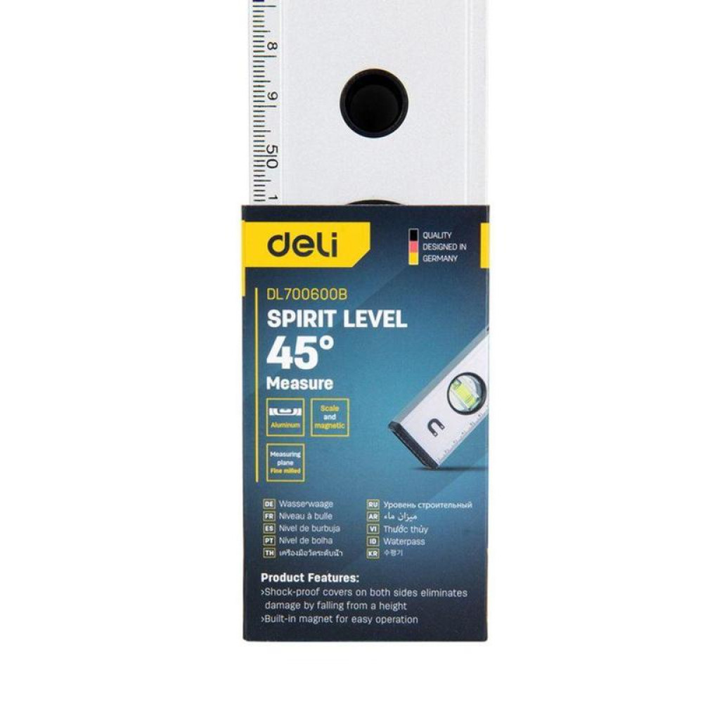 Строительный уровень Deli DL700600B 600мм, алюминиевый сплав, мягкие резиновые заглушки, магнит