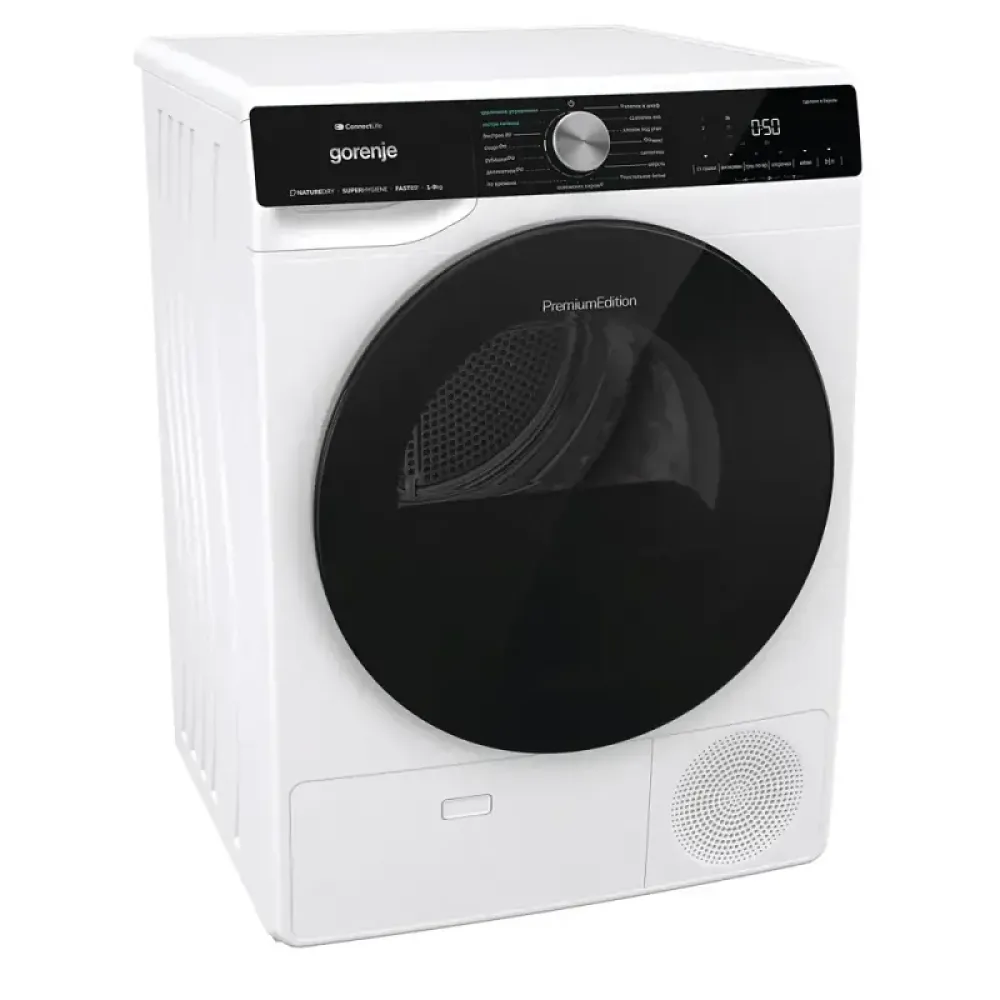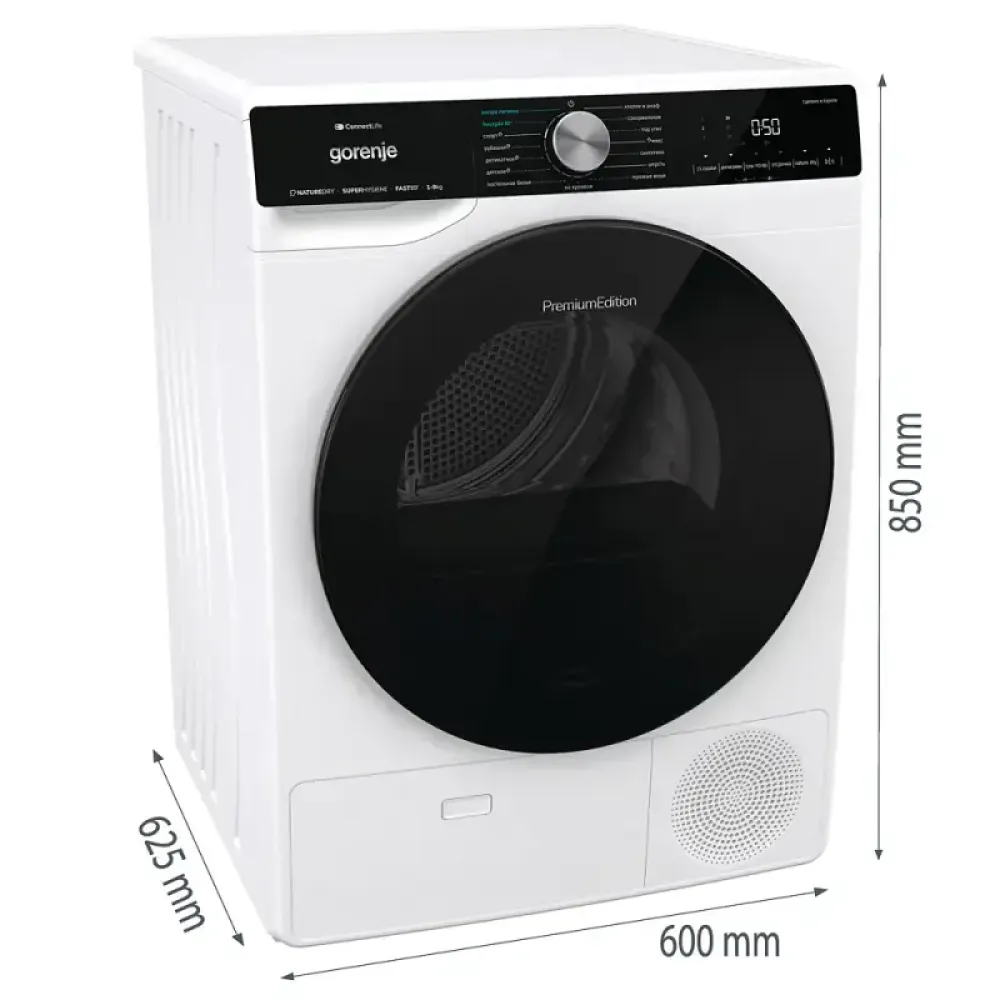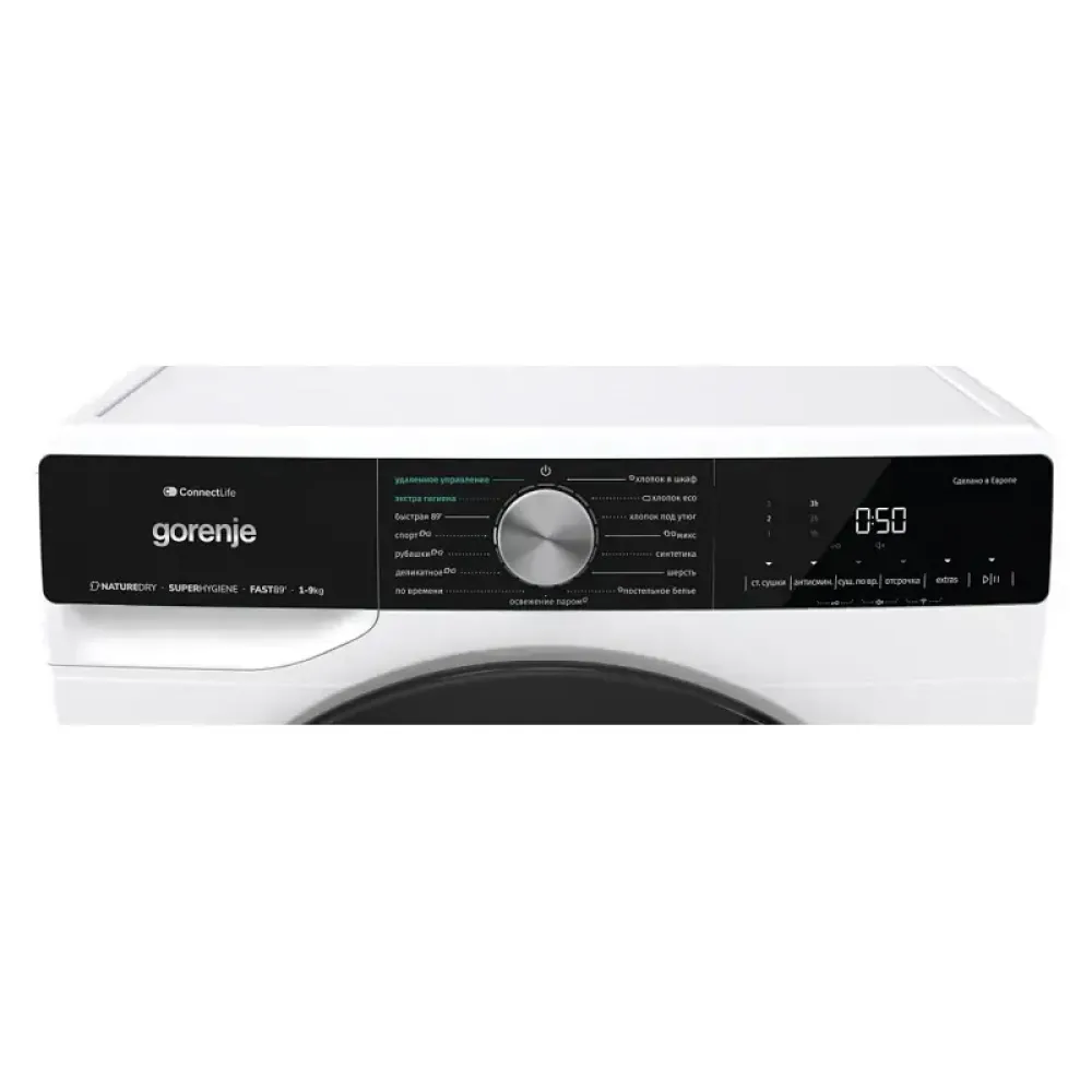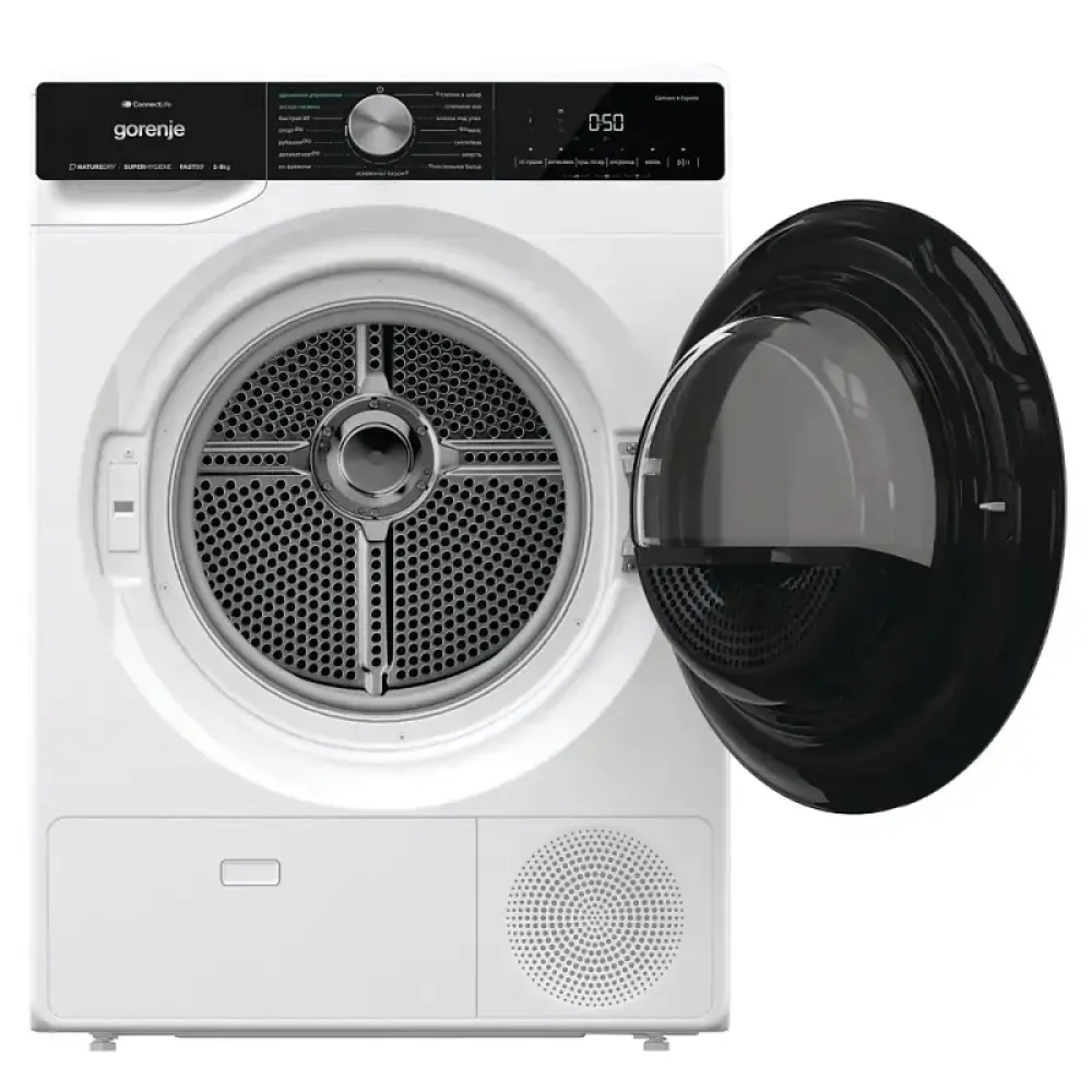 Сушильная машина Gorenje/ Сушильная машина Gorenje, 15 программ, загрузка 9 кг, цифровой дисплей, отсрочка старта, Wi-Fi, пауза, сенсор влажности белья, настройка степени сушки, защита от сминания, тепловой насос, цвет белый
