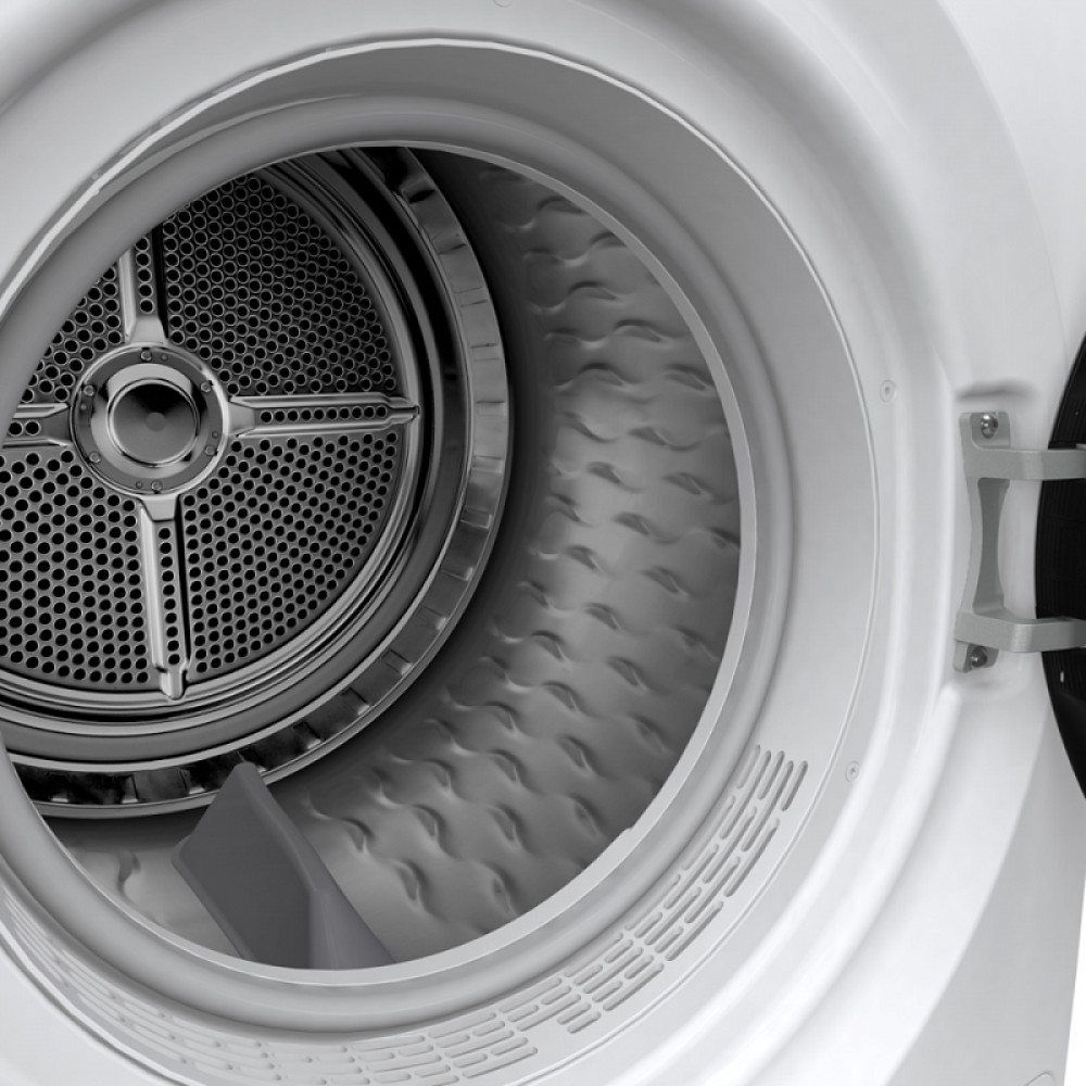 Цифровой дисплей с индикацией времени делает процесс управления простым и интуитивно понятным. Вы всегда будете в курсе оставшегося времени до завершения цикла сушки. Благодаря Wi-Fi управлению, вы можете контролировать работу сушильной машины прямо со своего смартфона, что добавляет удобства в повседневное использование. Подсветка барабана обеспечивает хорошую видимость внутри, позволяя вам легко загружать и выгружать белье.