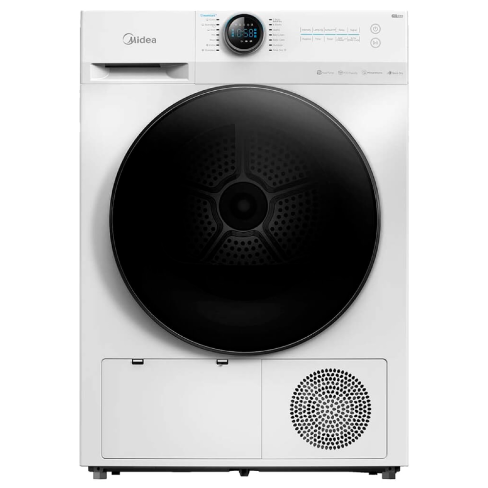 Сушильная машина MIDEA/ Сушильная машина MIDEA с тепловым насосом, электронное управление, дисплей, подсветка барабана, HealthGuard,AirFresh, 14 программ, максимальная загрузка 9 кг, энергоэффективность А+++, цвет белый