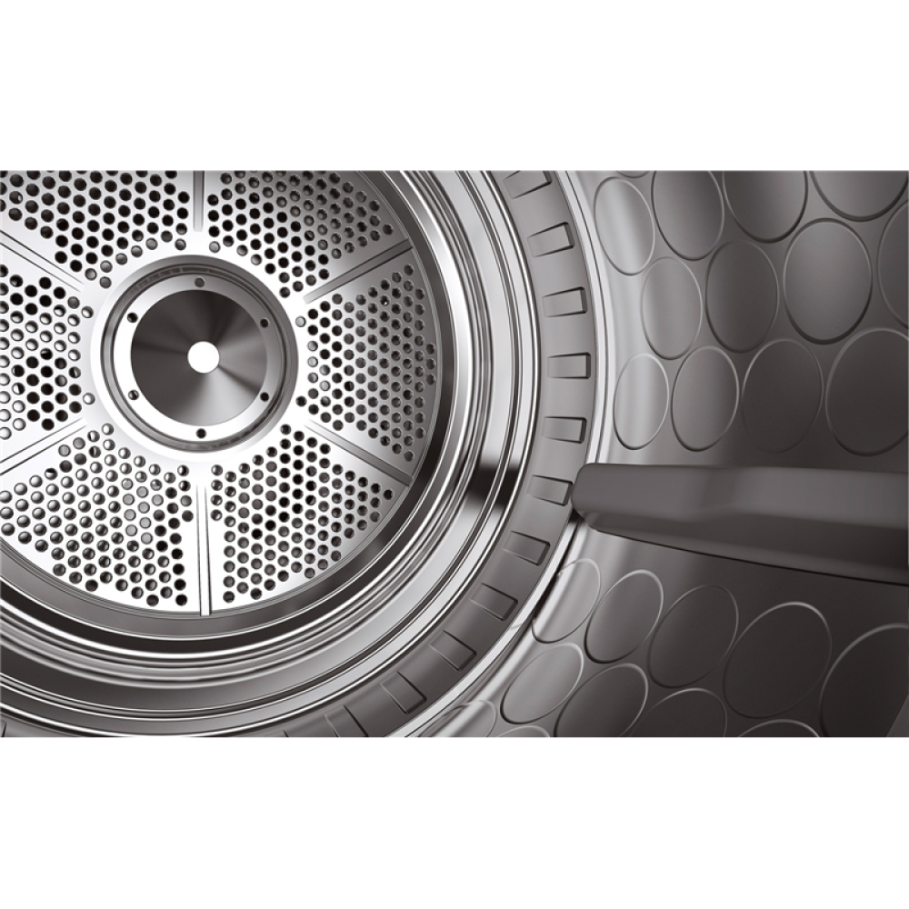 Сушка при помощи теплового насоса позволяет экономить электроэнергию и снижает затраты на коммунальные услуги, обеспечивая класс энергоэффективности А++. Индукционный мотор обеспечивает долговечность и надежность работы, минимизируя вероятность поломок.
