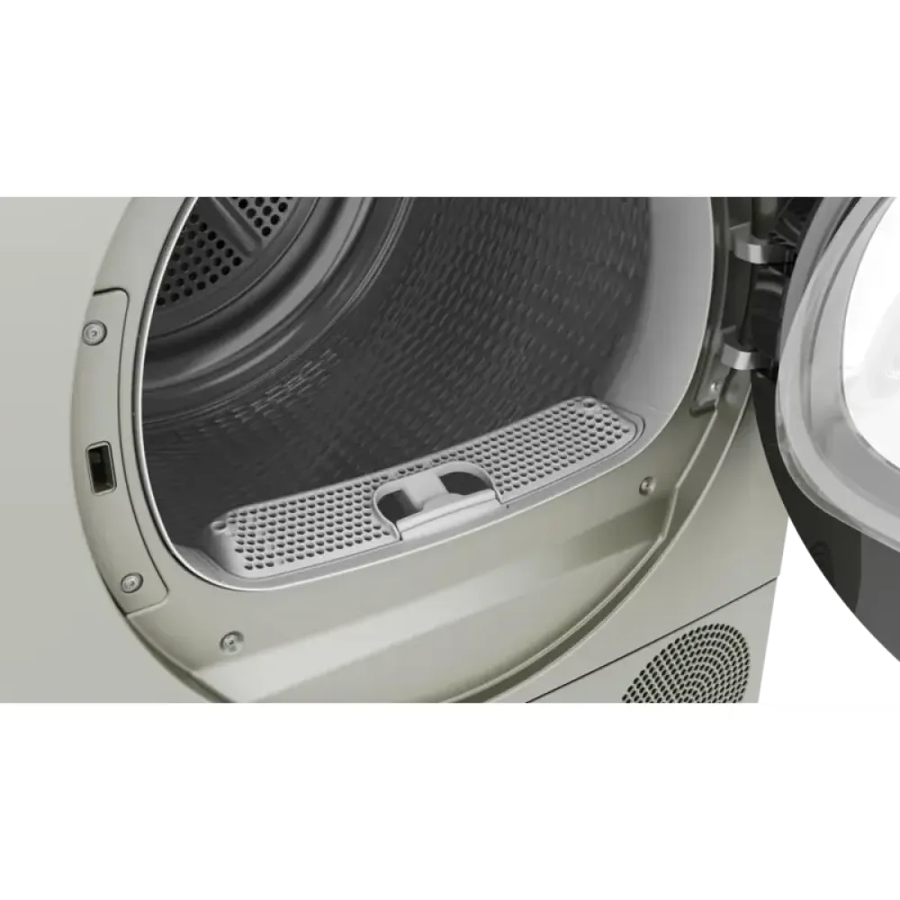 Сушильная машина обладает максимальной загрузкой в 9 кг, что делает её идеальным выбором для больших семей. Благодаря использованию теплового насоса, устройство отличается высоким классом энергоэффективности A+++, что позволяет значительно снизить расходы на электроэнергию.