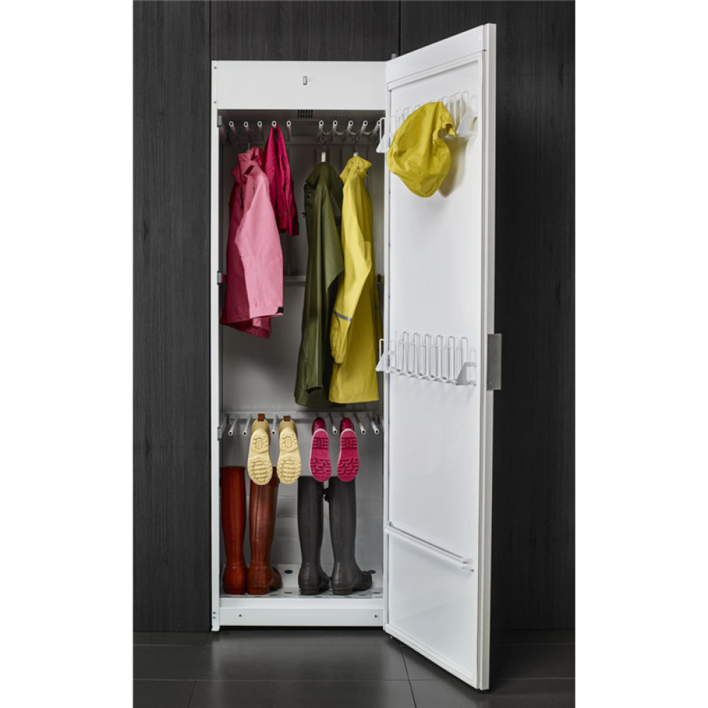 Кроме того, сушильный шкаф Asko комплектуется подставкой для обуви, что делает его многофункциональным устройством. Вы сможете высушить не только одежду, но и обувь, что особенно актуально в дождливую или холодную погоду. Подставка обеспечивает стабильность и подходит для различных типов обуви, позволяя надежно закрепить их во время сушки.