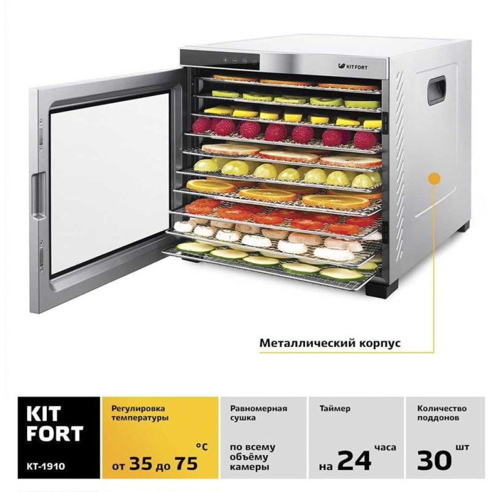 Сушка для фруктов и овощей Kitfort КТ-1910 30под. 1000Вт нержавеющая сталь