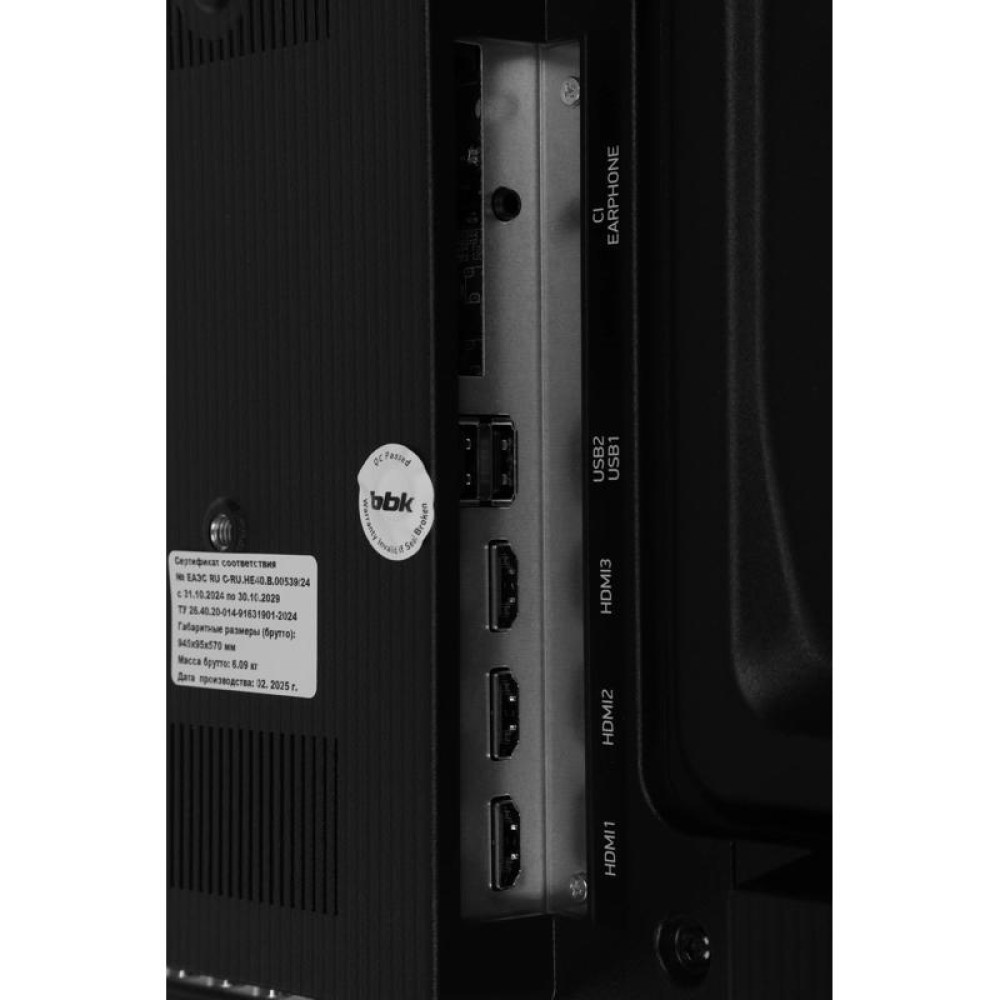 Диагональ экрана (дюймы): 40" Разрешение: 1920x1080Частота обновления: 60 Гц Соотношение сторон: 16:9Углы обзора: 178/178Яркость: 200 кд/м2Цифровой тюнер DVB-T2: Да Кабельный тюнер DVB-C: Да Спутниковый тюнер DVB-S2: Да Стандарт разрешения экрана: FULL HD Поддержка SMART TV: Да Встроенный Wi-Fi: Да Тип разъема USB: мультимедийныйРазмеры без подставки (ШхВхГ): 891х514х70 ммВес: 4.5 кг