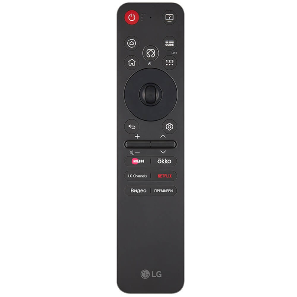 Легко управляйте телевизором с помощью AI magic remote - не требуются дополнительные устройства. Датчик движения и колесо прокрутки пульта позволяют просто наводить указатель и нажимать, используя его как «воздушную мышь». Можно также использовать голосовые команды.