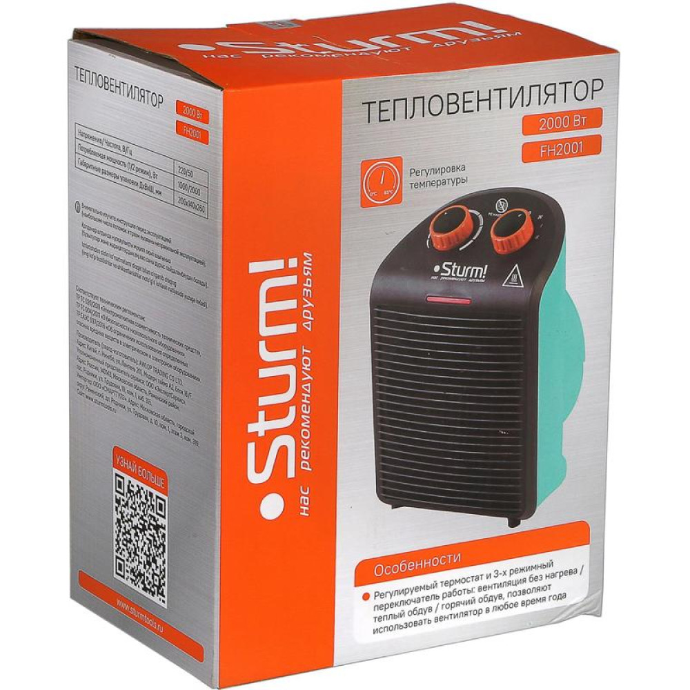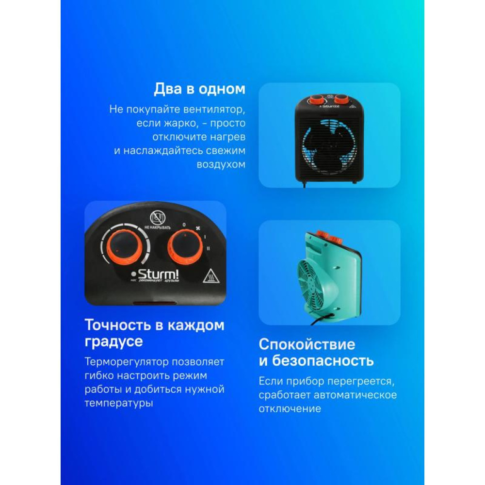 Тепловентилятор/ Тепловентилятор Sturm! FH2001 2000Вт черный/зеленый