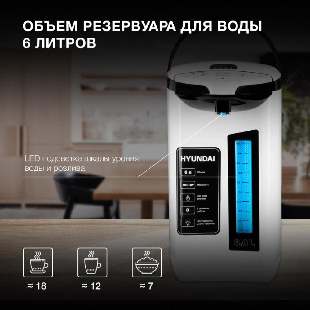 Термопот Hyundai HYTP-4850 6л. 750Вт белый/черный