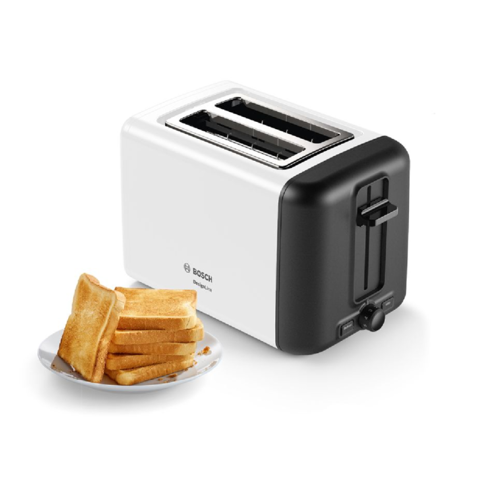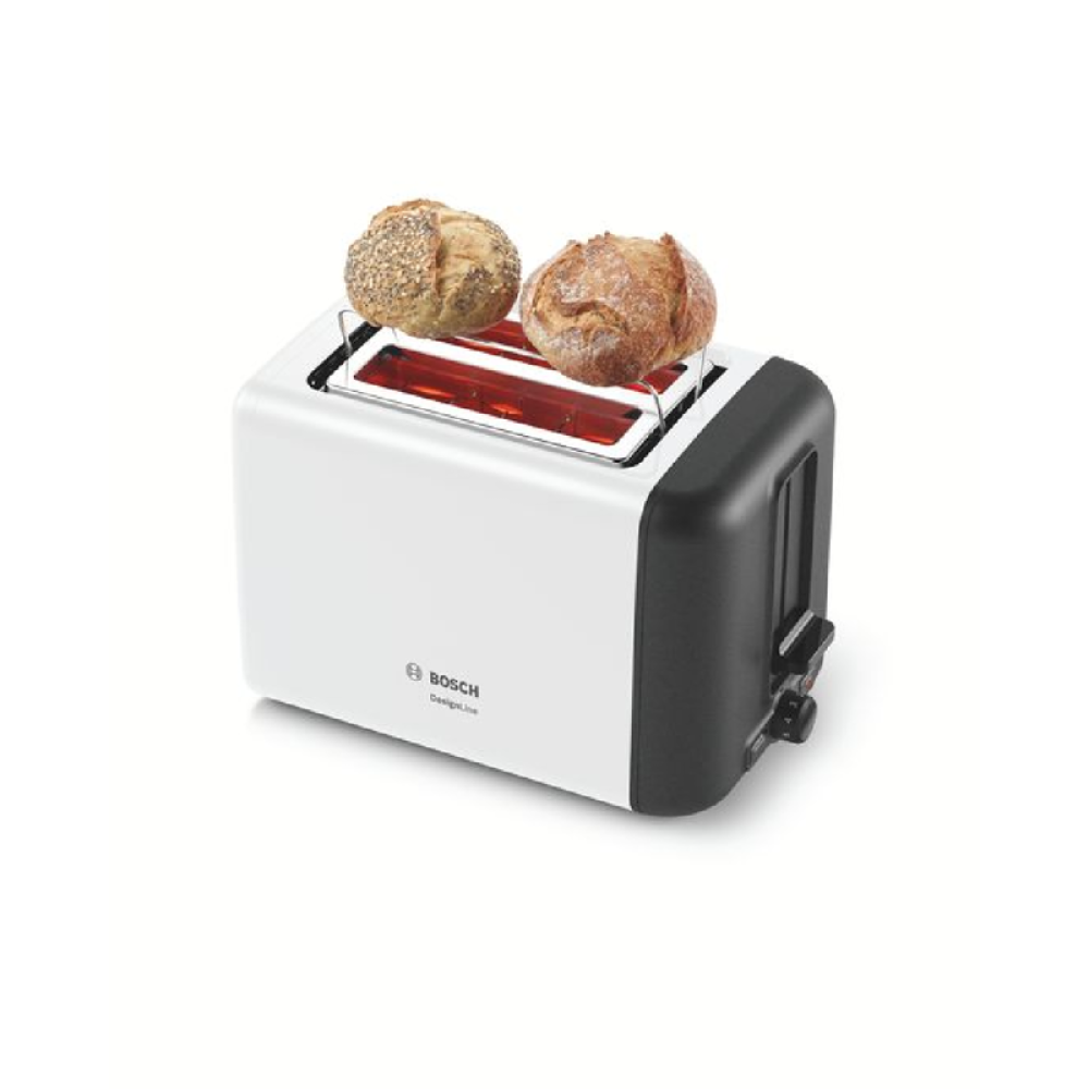 Тостер Bosch TAT3P421 Тостер, CompactClass, 2 отделения, механическое управление, цвет белый/черный