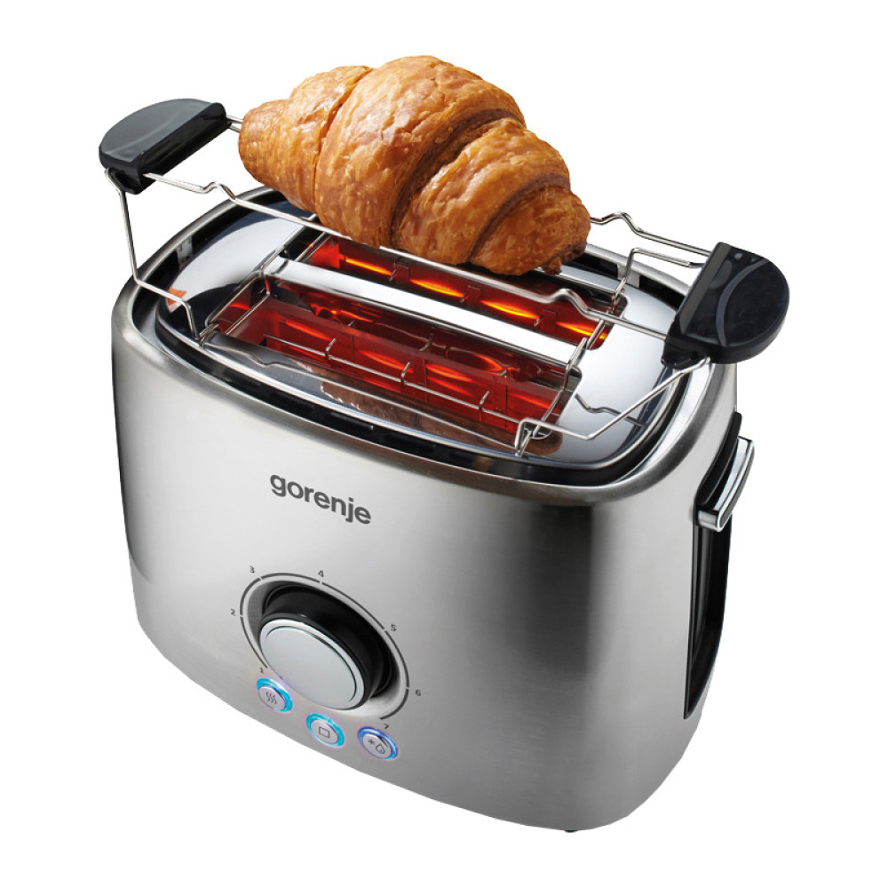 GORENJE T1000E - это удобный в использовании, стильный тостер, рассчитанный на одновременное поджаривание двух тостов. Всего 7 степеней обжаривания.В комплекте есть съемная решетка для подогрева круассанов и булочек.Элементы управления имеют голубую подсветку. Тостер устойчиво стоит на прорезиненных ножках. В целях безопасности корпус имеет надежный изоляционный слой, поэтому он не нагревается в процессе работы.