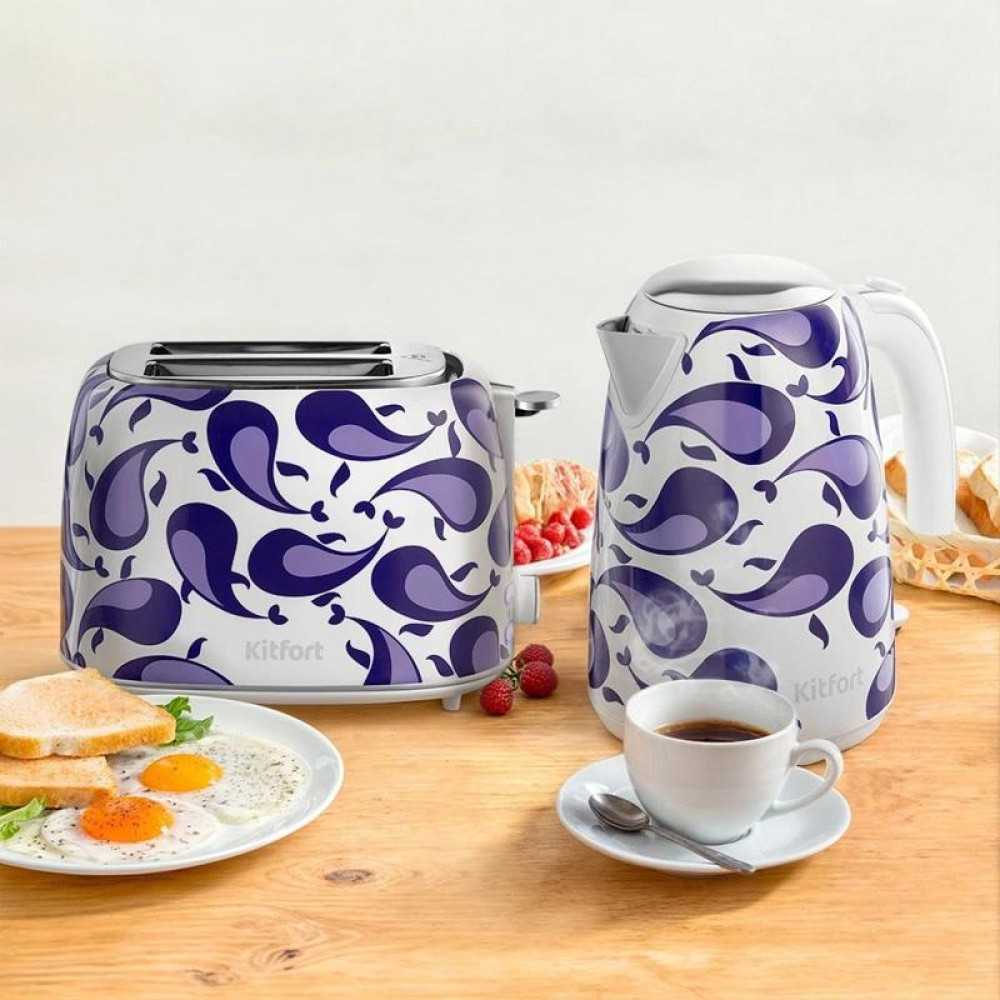 Тостер Kitfort КТ-6863 1080Вт белый/фиолетовый