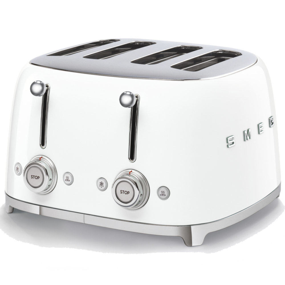 Тостер Smeg в стиле 50-х годов предназначен для одновременного приготовления 4 ломтиков хлеба. Корпус изготовлен из нержавеющей стали.