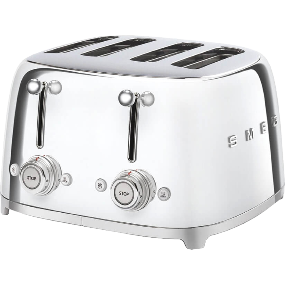 Тостер на 4 ломтика, Цвет хром; Функции: подогрев, размораживание, багель; 6 уровней поджаривания; Съемный поддон для крошек.