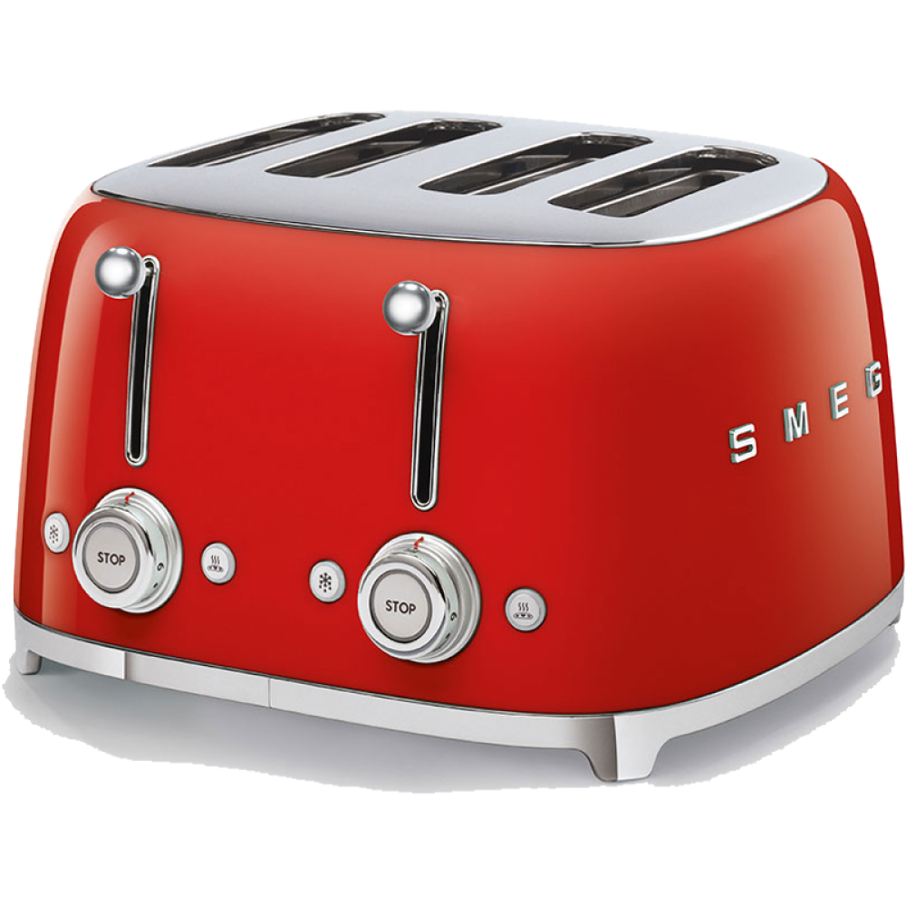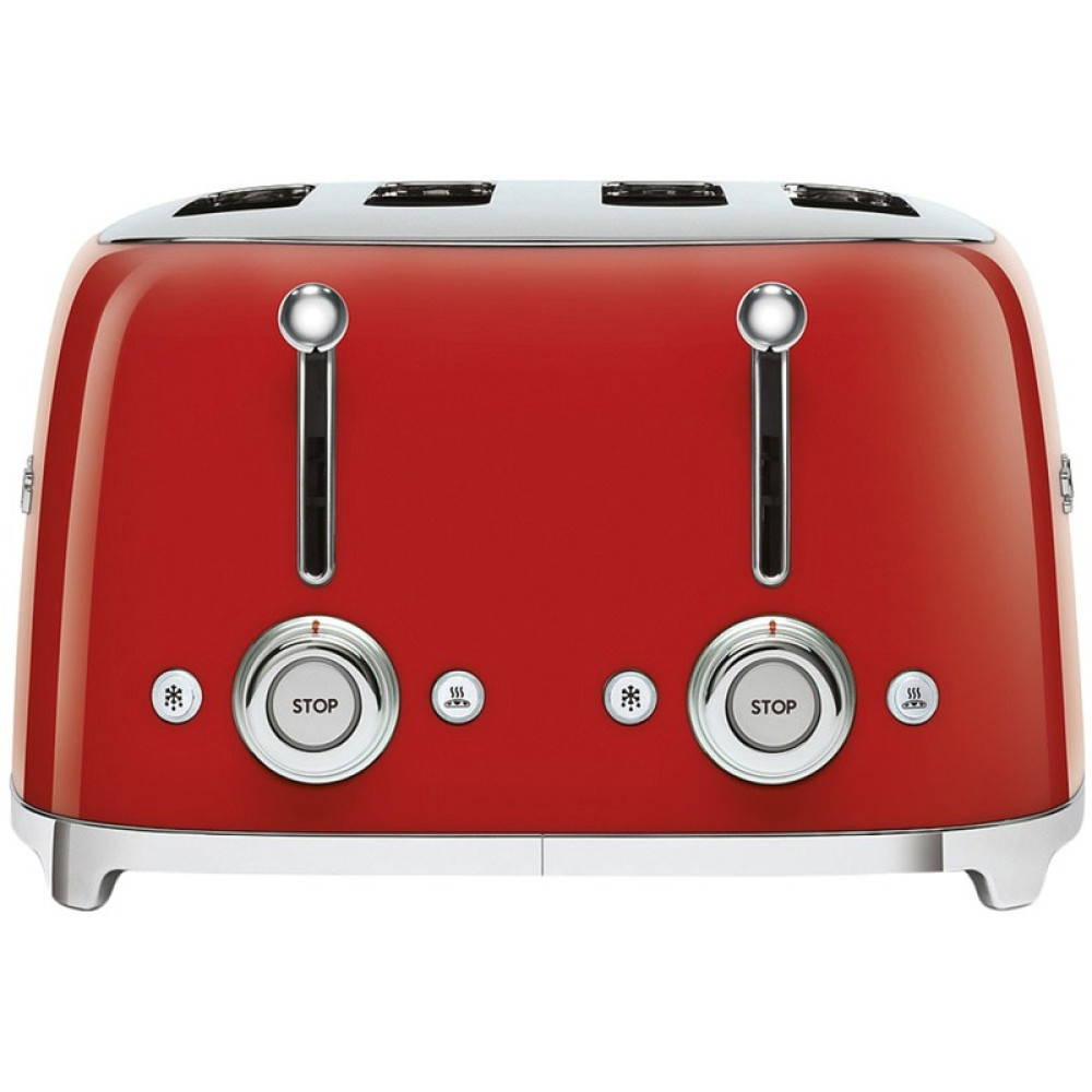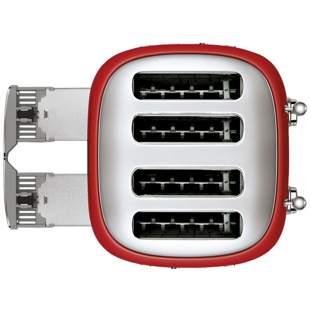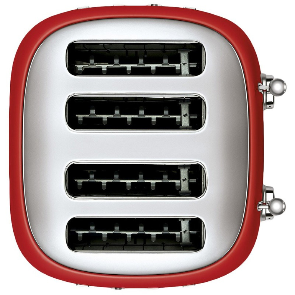 Тостер на 4 ломтика, Цвет красный; Функции: подогрев, размораживание, багель; 6 уровней поджаривания; Съемный поддон для крошек.