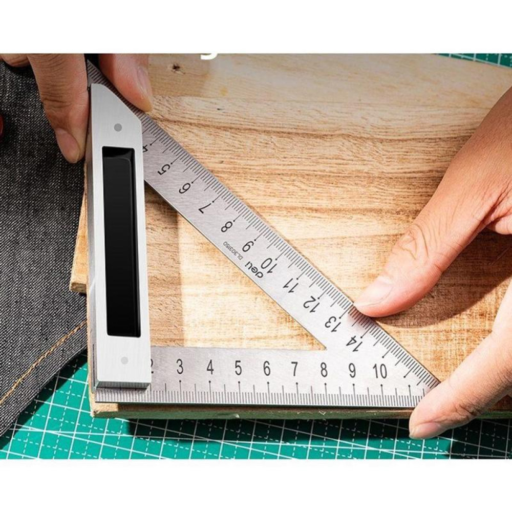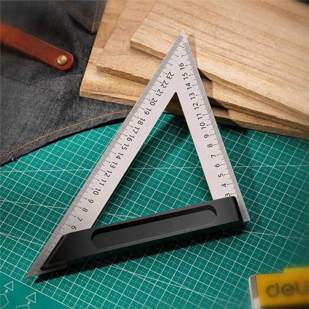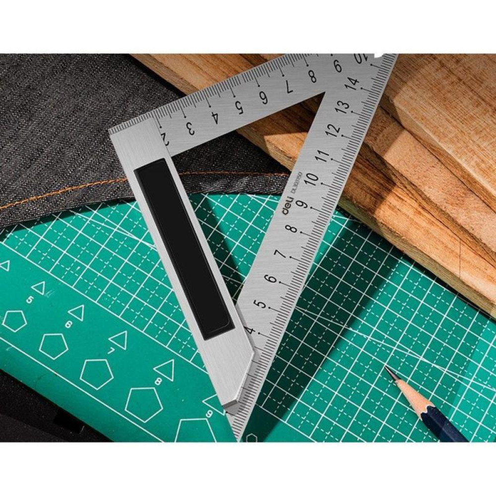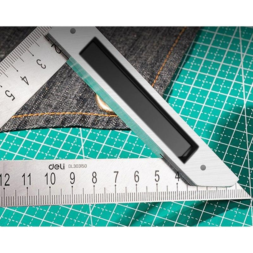 Треугольная линейка стальная Deli DL303150 150мм, нержавеющая сталь + алюминиевое основание