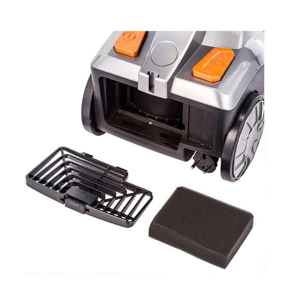 Пылесборник объёмом 1,5 литра выполнен в виде циклонного фильтра, который легко освобождается от мусора. Благодаря этому фильтру пылесос эффективно удаляет даже мельчайшие частицы пыли, обеспечивая тщательную очистку помещения.