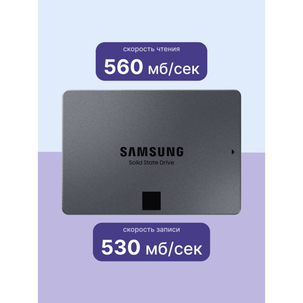 Твердотельные накопители Samsung 870 QVO, 1000GB, 2.5" 7mm, SATA3, 4-bit MLC, R/W 560/530MB/s, IOPs 98 000/88 000, TBW 360, DWPD 0.33 (12 мес.) [MZ-77Q1T0BW]