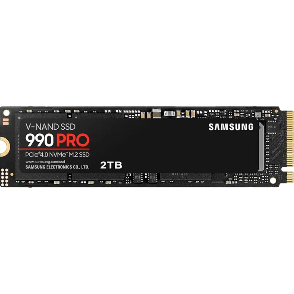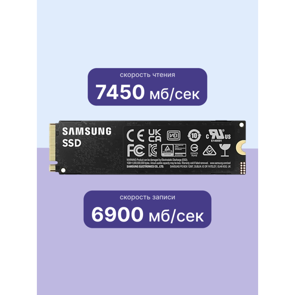 Невероятная скорость, бесконечная победа. Лучший твердотельный накопитель.Достигните максимальной производительности PCIe® 4.0 . Испытайте более длительную, взрывную скорость противника. Интеллектуальный контроль температуры внутреннего контроллера обеспечивает высочайшую энергоэффективность, сохраняя при этом невероятную скорость и производительность, чтобы вы всегда были на вершине своей игры.Максимальная скорость PCIe 4.0.Огромный прирост скорости. Скорость произвольного чтения/записи на 40% и 55% выше, чем у 980 PRO - до 1400K/1550K IOPS, а скорость последовательного чтения/записи до 7450/6900 МБ/с почти достигает максимальной производительности PCIe® 4.0 . Поднимитесь на вершину в играх, редактировании видео и 3D, анализе данных и многом другом.Революционная энергоэффективность.Более энергоэффективная производительность. Более высокая производительность обычно потребляет больше энергии. Но 990 PRO потребляет меньше энергии с улучшенной производительностью более чем на 50% на ватт по сравнению с 980 PRO. Эта конструкция с низким энергопотреблением делает возможной максимальную производительность PCIe® 4.0 с оптимальной энергоэффективностью.Умное тепловое решение. Скорость выше жары. Контроллер с никелированным покрытием и передовой алгоритм терморегулирования управляют теплом для стабильной работы. Наклейка распределителя тепла контролирует тепло чипа NAND, а Dynamic Thermal Guard поддерживает оптимальную температуру.Создатель чемпионов.Лучший игровой опыт. Более чем на 55% улучшение случайной производительности обеспечивает более быструю загрузку для максимального игрового реализма в играх для PS5 и DirectStorage для ПК.Программное обеспечение Samsung Magician.Раскройте всю мощь 990 PRO. Удобный набор инструментов оптимизации программного обеспечения Samsung Magician всегда обеспечивает максимальную производительность SSD. Защищайте ценные данные, следите за состоянием диска и получайте важные обновления. Ваш личный набор инструментов для SSD.Флэш-память №1 в мире.Испытайте превосходную производительность и надежность, которые вы получаете только от бренда флэш-памяти № 1 в мире с 2003 года. Все компоненты и микропрограммы производятся собственными силами, включая всемирно известные модули памяти DRAM и NAND от Samsung, для интегрированного качества от начала до конца, которому вы можете доверять.