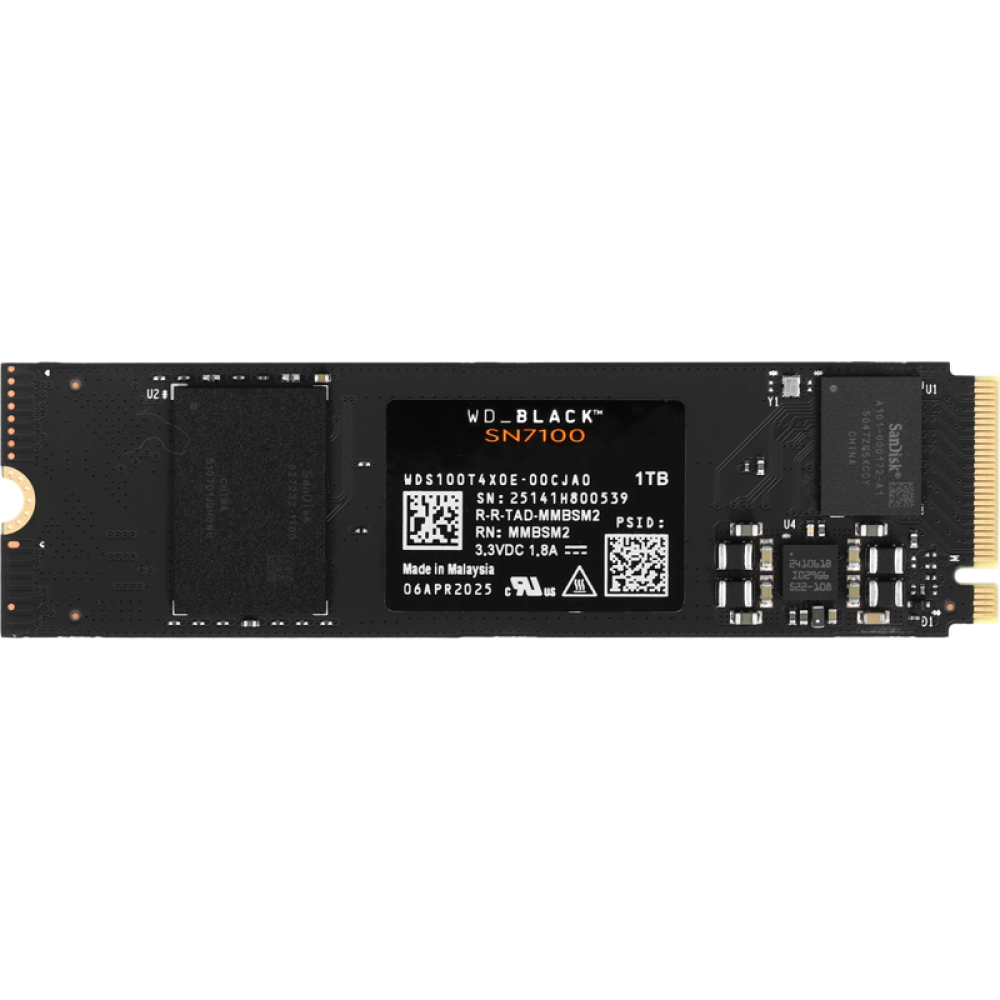 Твердотельные накопители/ WD SSD Black SN7100, 1000GB, M.2(22x80mm), NVMe, PCIe 4.0 x4, 3D TLC, R/W 7250/6900MB/s, IOPs 1 000 000/1 400 000, TBW 600, DWPD 0.3 (12 мес.)