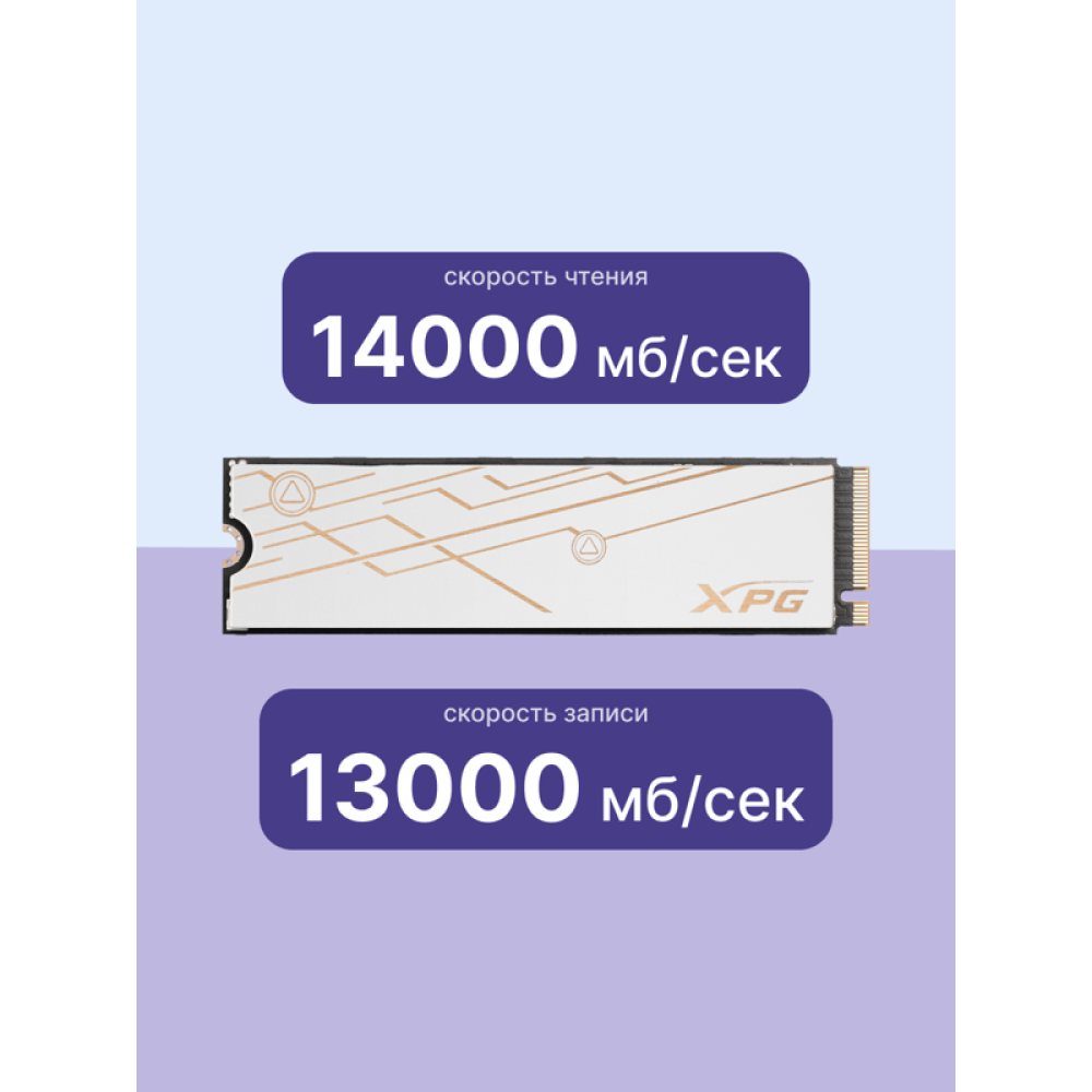 Твердотельный накопитель ADATA SSD XPG MARS 980 BLADE, 4000GB, M.2(22x80mm), NVMe, PCIe 5.0 x4, 3D NAND, R/W 14000/13000MB/s, IOPs 1 950 000/1 650 000, TBW 2960, DWPD 0.4 (5 лет)