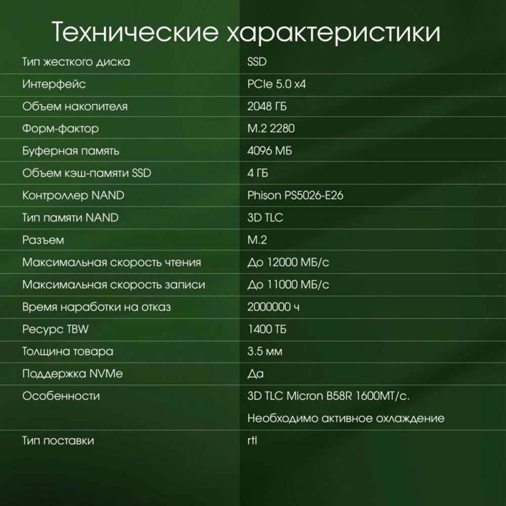 Твердотельный накопитель Digma Pro PCIe 5.0 x4 2000GB DGPST5002TP6T4 Top P6 M.2 2280 [DGPST5002TP6T4]