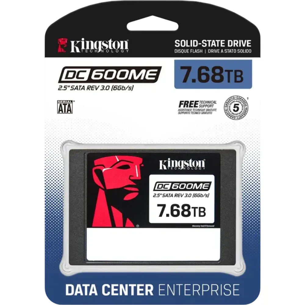 Kingston SSD DC600M 7680GB (2.5", 7 mm, SATA3, модель SEDC600ME/7680G) — это высокопроизводительный корпоративный твердотельный накопитель, предназначенный для серверов и систем хранения данных. Этот SSD сочетает надёжность, высокую скорость и большую ёмкость для интенсивных нагрузок.