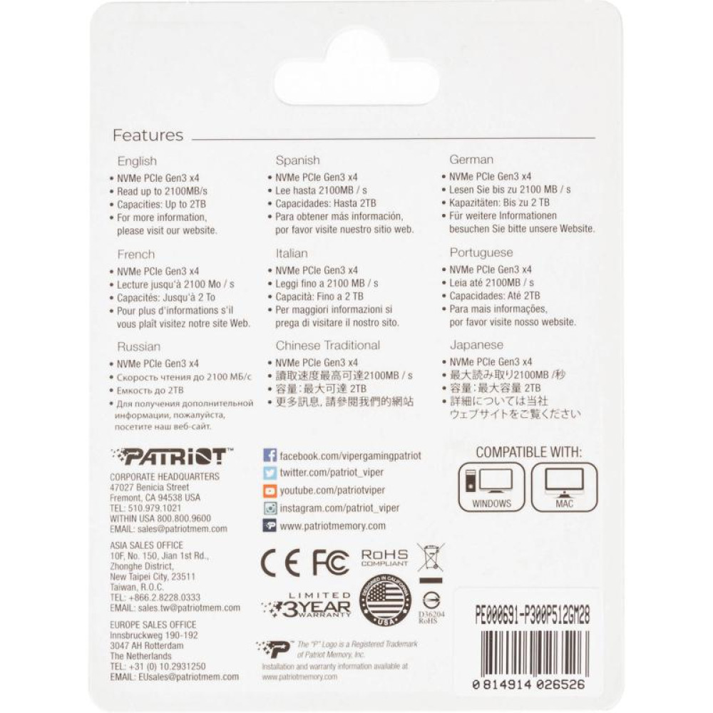 Твердотельный накопитель Patriot PCIe 3.0 x4 512GB P300P512GM28 P300 M.2 2280 [P300P512GM28]