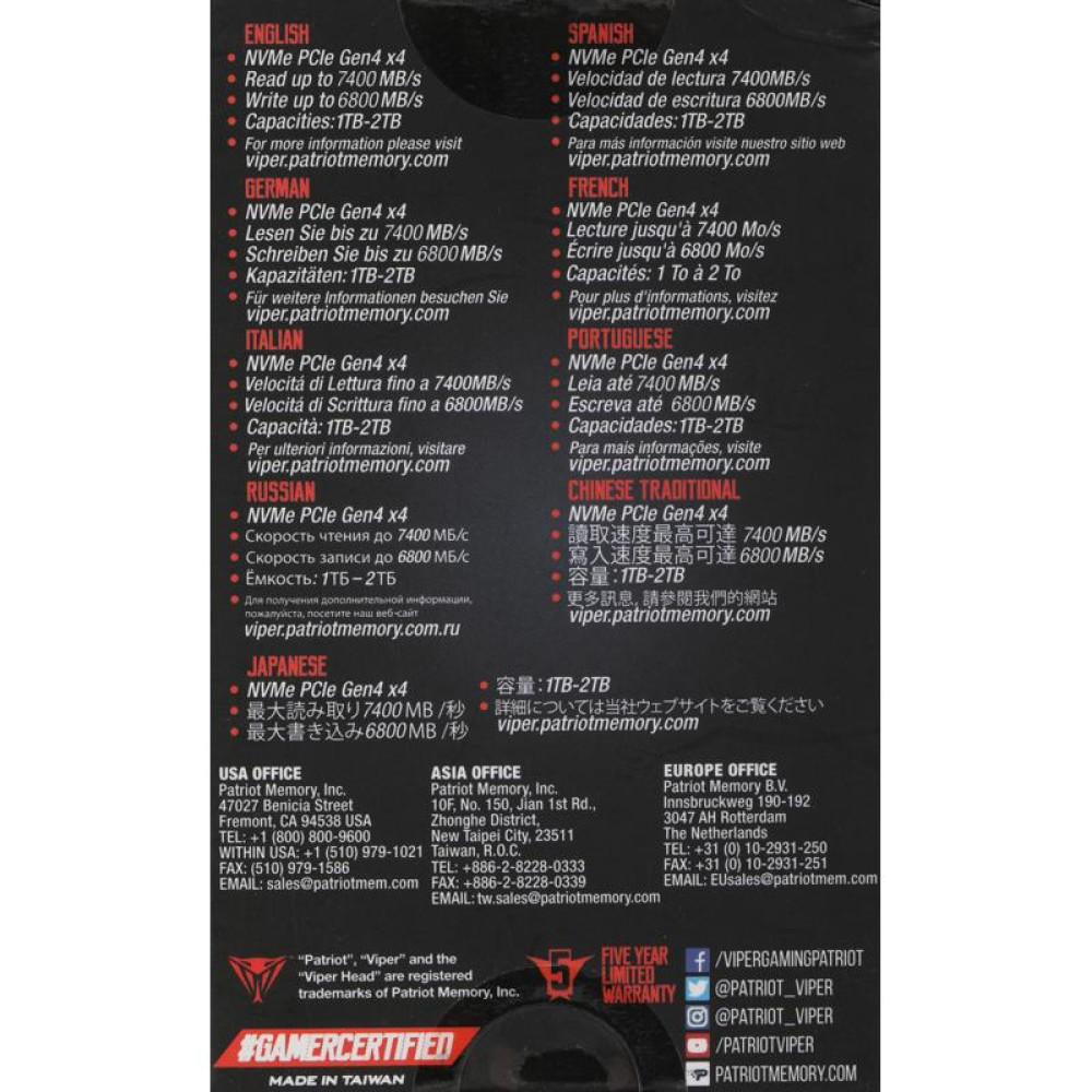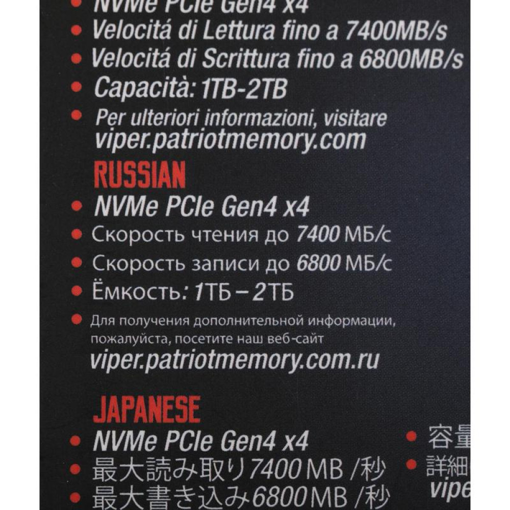 Твердотельный накопитель Patriot PCIe 4.0 x4 2TB VP4300-2TBM28H Viper VP4300 M.2 2280 [VP4300-2TBM28H]