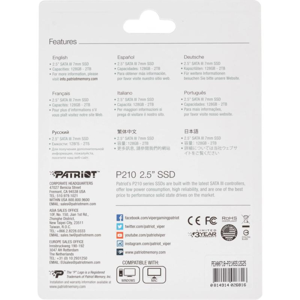 Твердотельный накопитель Patriot SATA-III 512GB P210S512G25 P210 2.5" [P210S512G25]