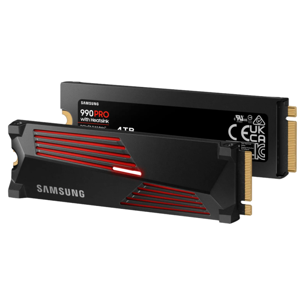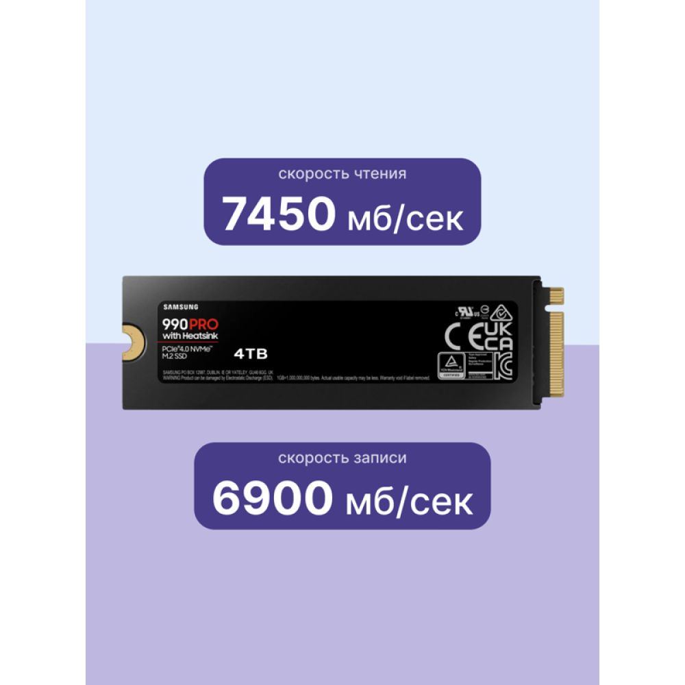 Твердотельный накопитель Samsung SSD 990 PRO, 4000GB, M.2(22x80mm), NVMe 2.0, PCIe 4.0 x4, V-NAND TLC, R/W 7450/6900MB/s, IOPs 1 400 000/1 550 000, DRAM buffer 4096MB, TBW 2400, DWPD 0.33, with Heatsink (12 мес.)