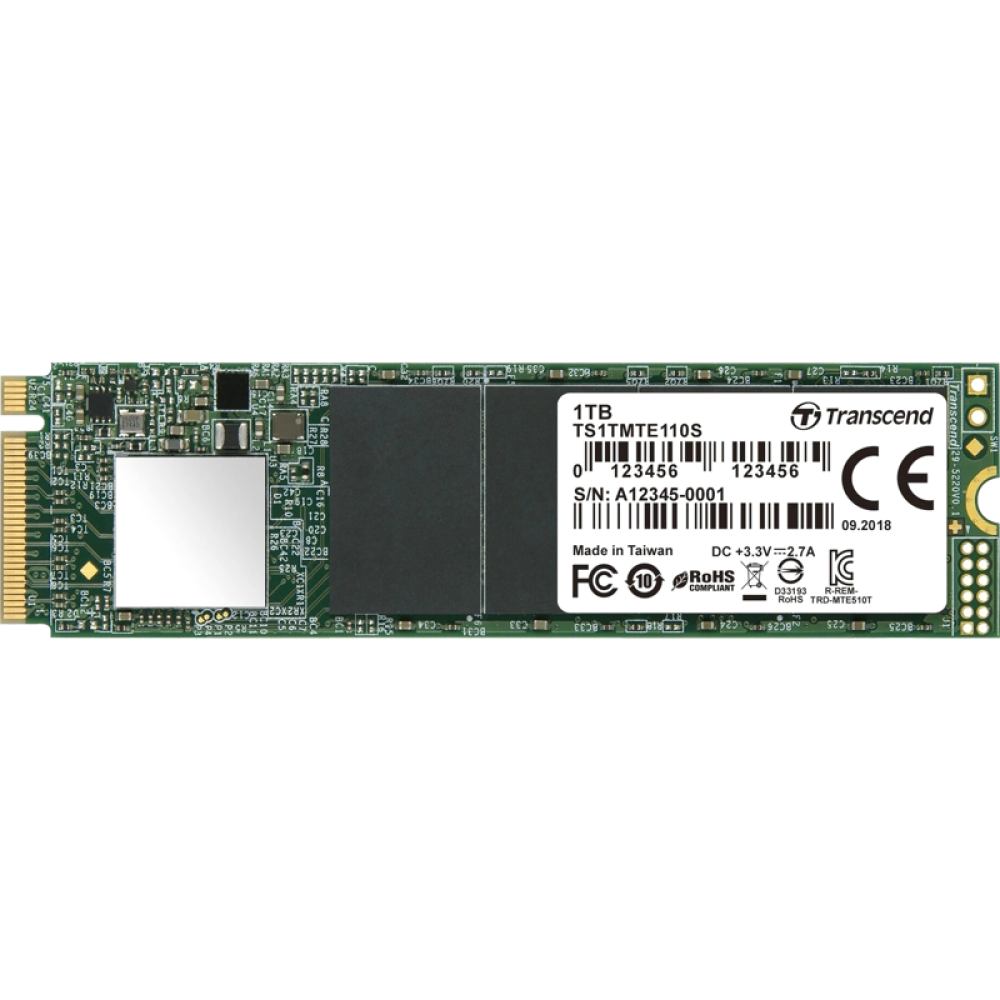Твердотельный накопитель/ Transcend SSD MTE110S, 2048GB, M.2(22x80mm), NVMe, PCIe 3.0 x4, 3D TLC, R/W 2500/1700MB/s, IOPs 200 000/250 000, TBW 800, DWPD 0.2 (12 мес.)