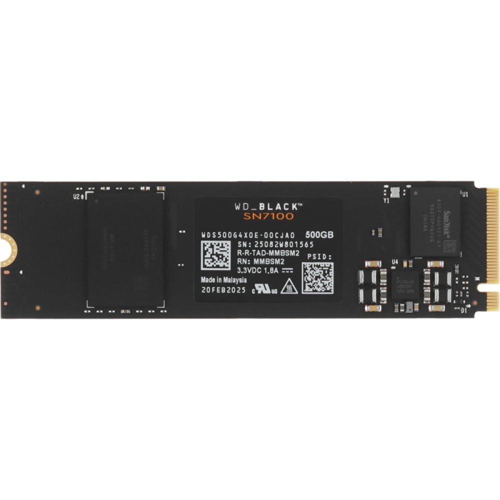 Твердотельный накопитель/ WD SSD Black SN7100, 500GB, M.2(22x80mm), NVMe, PCIe 4.0 x4, TLC, R/W 6800/5800MB/s, TBW 300, DWPD 0.3 (12 мес.)