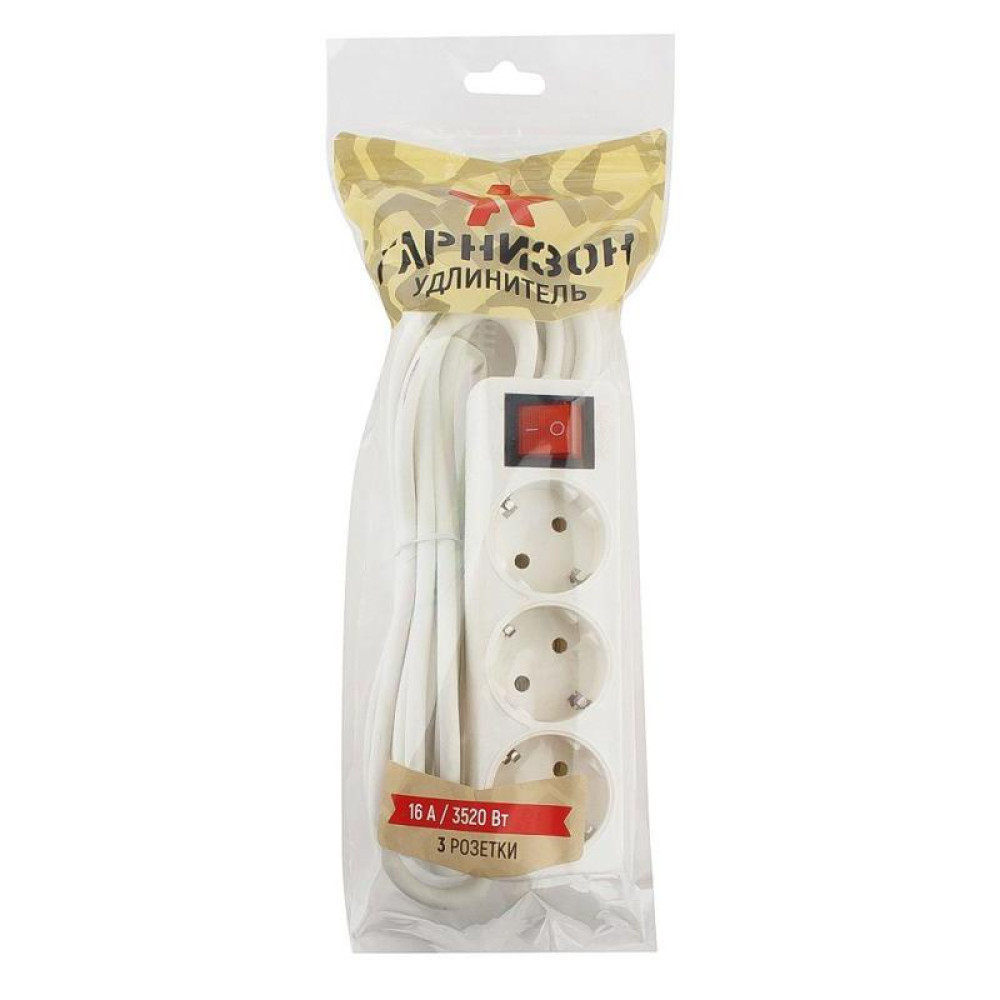 Удлинитель Гарнизон ELB-G3-W-5 3 евророзетки с выключателем и заземлением, допустимый ток 16А, длина 5м. (050753)