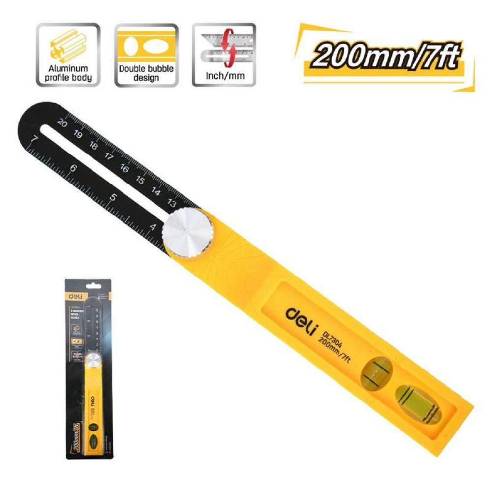 Угломер переставной - малка с пузырьковым уровнем Deli DL7304 200мм