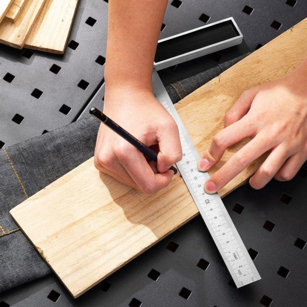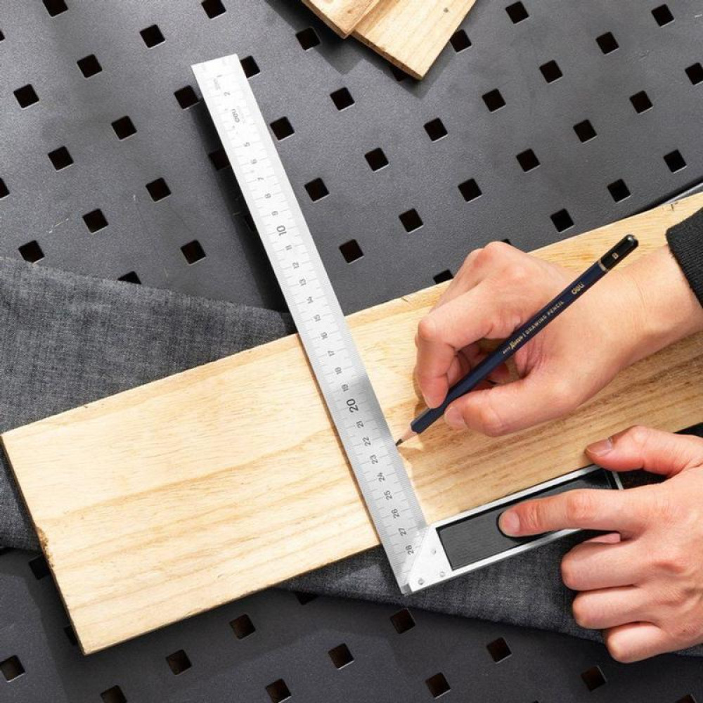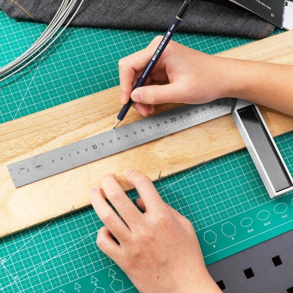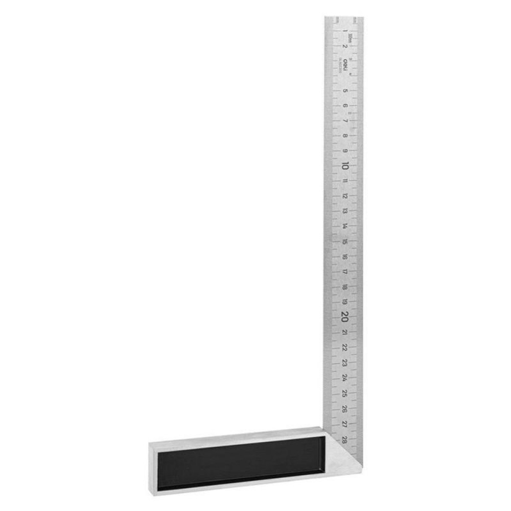 Угловая линейка стальная Deli DL302300 300мм, нержавеющая сталь + алюминиевое основание