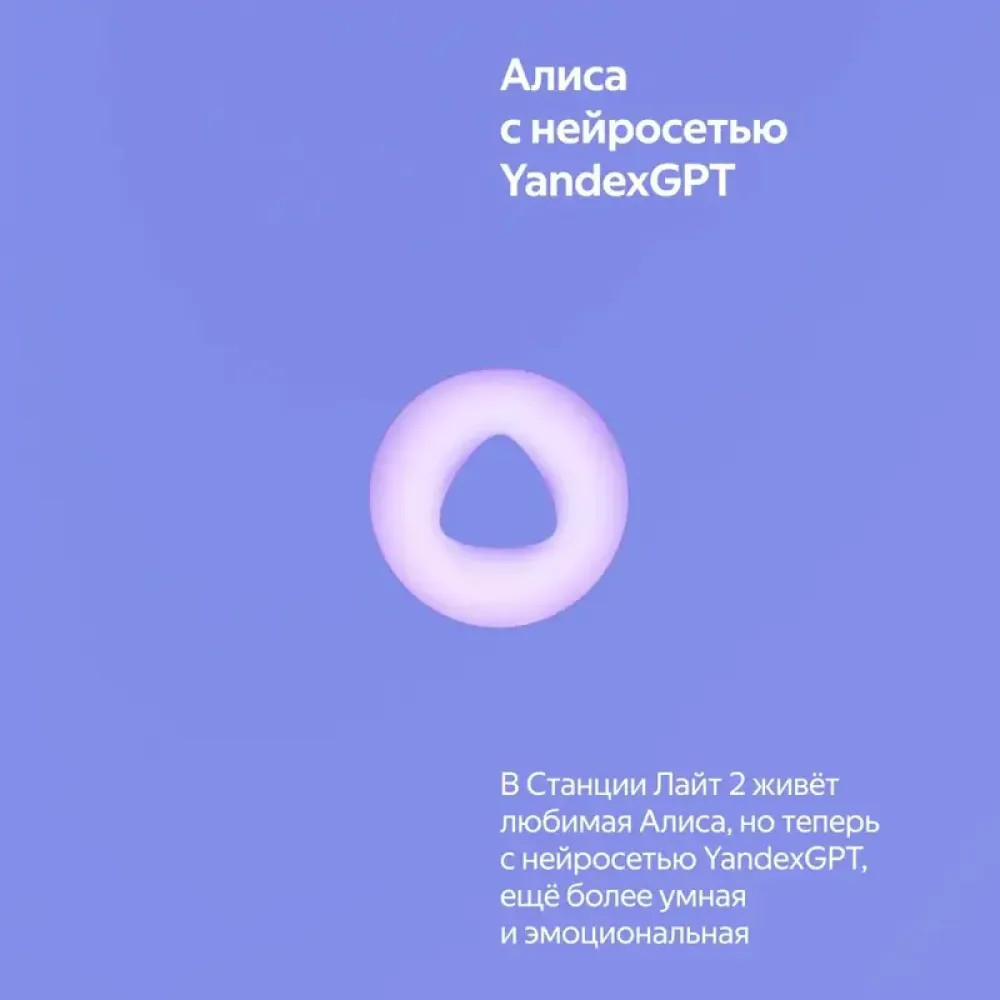 Яндекс Станция Лайт 2 — новая умная колонка для детей и тех, кто не перестаёт ими быть. Внутри живёт более эмоциональная и функциональная Алиса, с которой никогда не бывает скучно: с ней можно веселиться, делиться секретами, играть и общаться дни напролёт — она найдет ответы на миллионы вопросов, придумает идеи, предложит классные игры, включит любимую музыку. Теперь виртуальный ассистент №1⁵ подстраивает интонацию под ваше настроение и показывает свои эмоции с помощью глазок на LED-экране Станции. В наборе — классные стикеры и маски, чтобы у ребёнка было пространство для творчества.