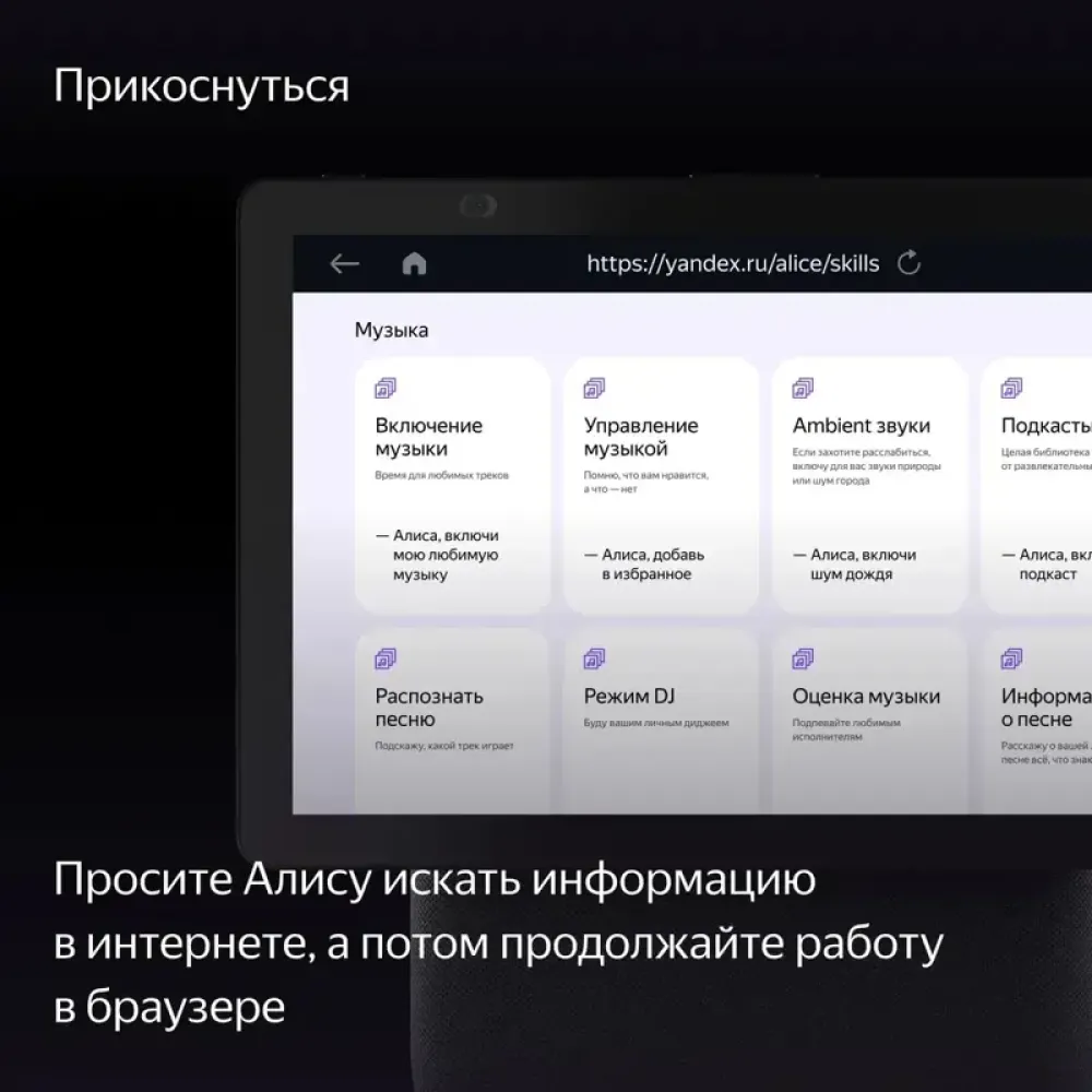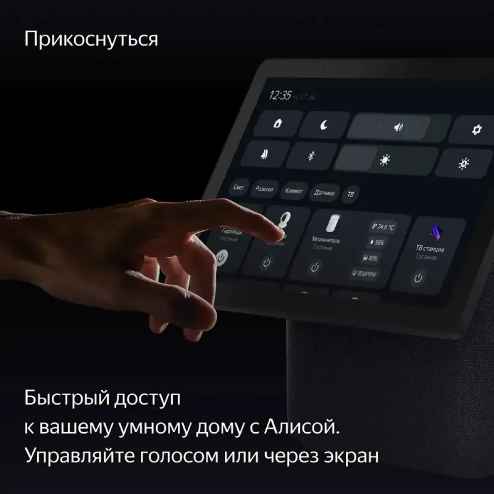 Яндекс Станция Дуо Макс с Алисой - новая флагманская умная колонка с экраном. Большой поворотный Full HD touch-экран с камерой, чтобы смотреть фильмы, общаться с близкими по видеосвязи, видеть ответы Алисы и управлять умным домом касаниями. Мощные динамики и сабвуфер - для чистого и сбалансированного звучания любимой музыки. Контурная анимированная LED-подсветка. Встроенный хаб управления Zigbee. Продуманный до деталей дизайн, чтобы вы получали удовольствие каждый раз, когда взаимодействуете с колонкой или просто на неё смотрите.Особенности Протокол связи ZigbeeЭто современный протокол связи, позволяющий объединить Zigbee-устройства в единую экосистему умного дома. Они могут работать даже без интернета и быстрее реагируют на команды. Zigbee-устройства взаимодействуют непосредственно друг с другом, а значит, быстрее выполняют команды и имеют более стабильное соединениеБольшой поворотный Full HD touch-экранПросите Алису искать и включать музыку, фильмы или сериалы, а потом управляйте контентом на экране касаниями: перематывайте, ставьте на паузу и выбирайте нужное. Смотрите телеканалы. Задавайте Алисе вопросы - и не только слушайте её ответы, но и смотрите их на экране. Или пользуйтесь браузеромВстроенная видеокамераКамера с широким углом обзора 120° - для видеозвонков. Просите Алису позвонить кому-то из списка контактов в Telegram и общайтесь по видеосвязи, при этом поворачивая экран вертикально или горизонтально - как удобнее. Во время видеозвонка камера будет удерживать вас в кадре, даже если вы перемещаетесь. При необходимости камера легко закрывается шторкойЧистое звучаниеСочетание широкополосных и низкочастотного динамиков мощностью 60 Вт и встроенного сабвуфера обеспечивает объёмное, глубокое и чистое звучаниеМножество навыков АлисыОбщайтесь с Алисой голосом, как привыкли. Только попросите - и она найдёт информацию в интернете, поможет заказать продукты или вызвать такси, прямо на экране покажет прогноз погоды или построит маршрут до работы. А ещё разбудит вас, когда попросите, поставит таймер или напоминание, а вы сможете управлять всем этим на экране: например, смотреть списки будильников и напоминаний и удалять неактуальныеНовые возможности умного домаВ Станцию Дуо Макс уже встроен хаб управления Zigbee, благодаря которому она напрямую взаимодействует с датчиками и другими устройствами умного дома, работающими по протоколу Zigbee. Сделайте колонку центром умного дома и общайтесь с ним голосом: например, спрашивайте у Алисы, какая сейчас температура в комнате, или смотрите данные на экране. А ещё на экране можно управлять приборами умного дома - для этого предусмотрен специальный интерфейсВнимание к нюансамСтильный дизайн, контурная анимированная LED-подсветка, добавляющая эмоций, когда общаетесь с АлисойФункция «Шёпот»С Алисой можно говорить шёпотом, например, чтобы не разбудить близких. Если обратиться к Алисе шёпотом, она тоже понизит голос - точно так же, как это делают людиЗаказ таксиМежду делом, в спешке, когда заняты руки - зовите Алису, если надо заказать такси. Это быстро и удобно