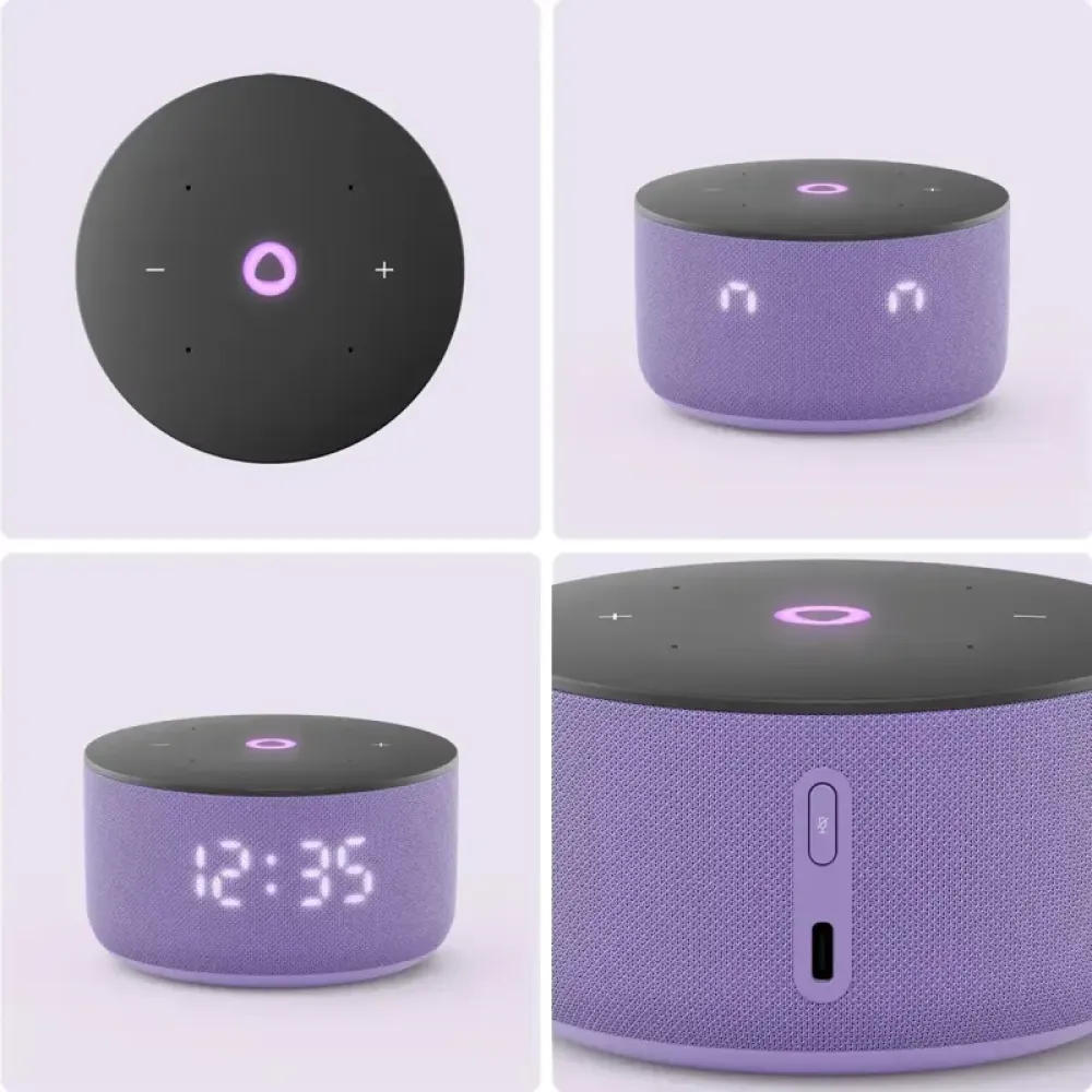 Благодаря более мягкой, цельной и гармоничной форме корпуса Станция Мини 3 отлично смотрится в любом современном интерьере. Цветовая палитра умной колонки тоже обновилась: можно выбрать классические чёрный и серый, а для ценителей акцентов подойдёт пастельный фиолетовый оттенок.