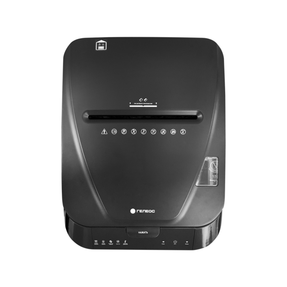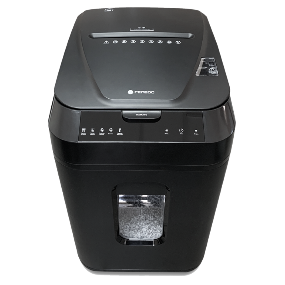 Уничтожитель документов ГЕЛЕОС АП40-4, DIN P-4 (4 ур-нь секр.), фрагмент 3,9х12мм, АВТОПОДАЧА 180 лист (70г/м2), пл.карты/скрепки/скобы, 37 литров