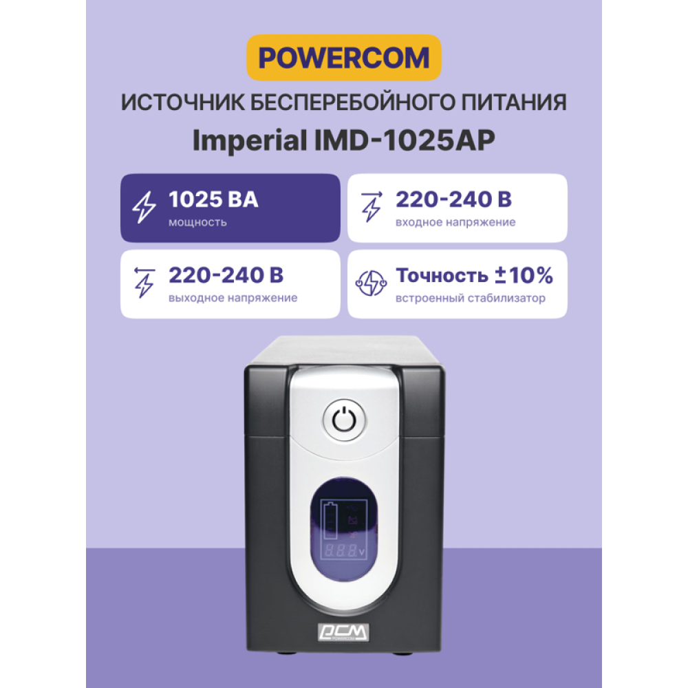 UPS Powercom IMD-1025AP, LCD, Line Interactive, 1025VA, 619W, 4 x IEC320 C13 Redundant, 2 x IEC320 C13 Filtered, USB, RJ45/RJ11 Protection, WxDxH 130x382x192mm, 13.4kg
