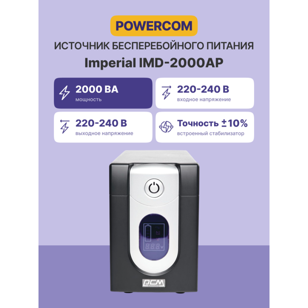 UPS Powercom IMD-2000AP, LCD, Line Interactive, 2000VA, 1200W, 4 x IEC320 C13 Redundant, 2 x IEC320 C13 Filtered, USB, RJ45/RJ11 Protection, WxDxH 130x382x192mm, 14.5kg
