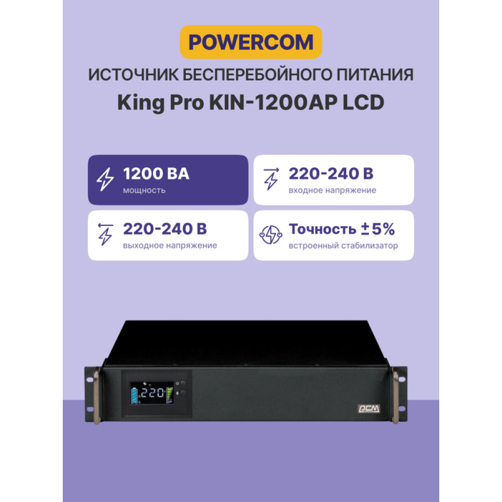 UPS Powercom King Pro RM KIN-1200AP LCD 960W 1200Va black