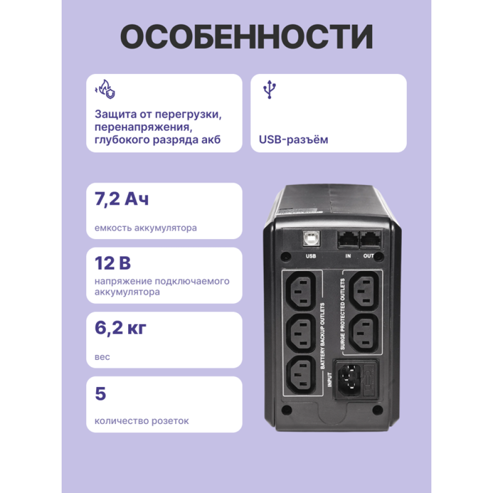 СФЕРА ПРИМЕНЕНИЯМодель применяется для защиты ответственного оборудования, требующего напряжение питания синусоидальной формы: небольшие серверы и другое сетевое, вычислительное и телекоммуникационное оборудование. ОСОБЕННОСТИ СЕРИИ