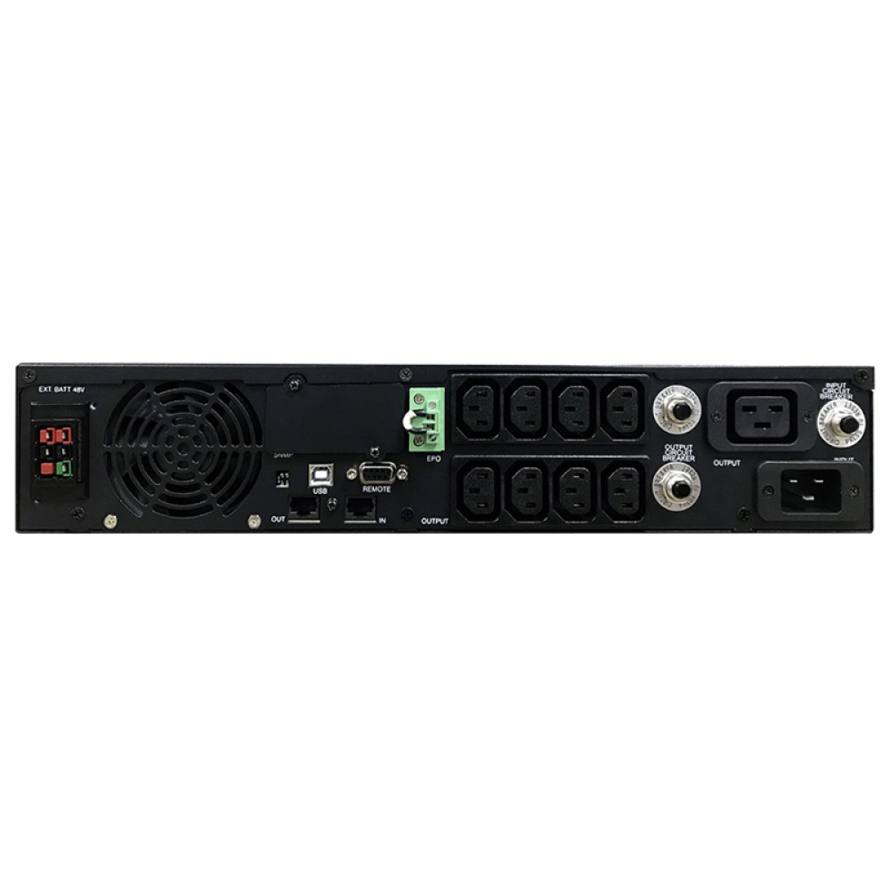 UPS POWERCOM SRT-2000A, line-interactive, 2000VA, 1800W, LCD, Rack / Tower, 8 IEC320 C13 sockets and 1 C19 sockets with redundant power supply, USB, RS-232, SNMP card slot, EPO, RJ45 protection, WxDxH 428x563x84mm. , weight 27.5kg.