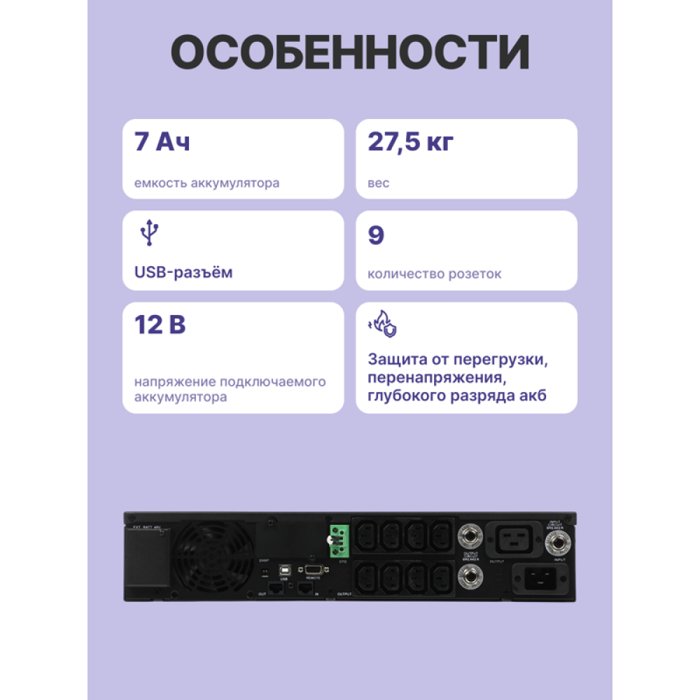 СФЕРА ПРИМЕНЕНИЯМодели SPR LCD предназначены для защиты ответственного оборудования, требующего напряжения питания синусоидальной формы: компьютерная техника и сетевое оборудование, небольшие серверы и другое вычислительное и телекоммуникационное оборудование. ОСОБЕННОСТИ СЕРИИ