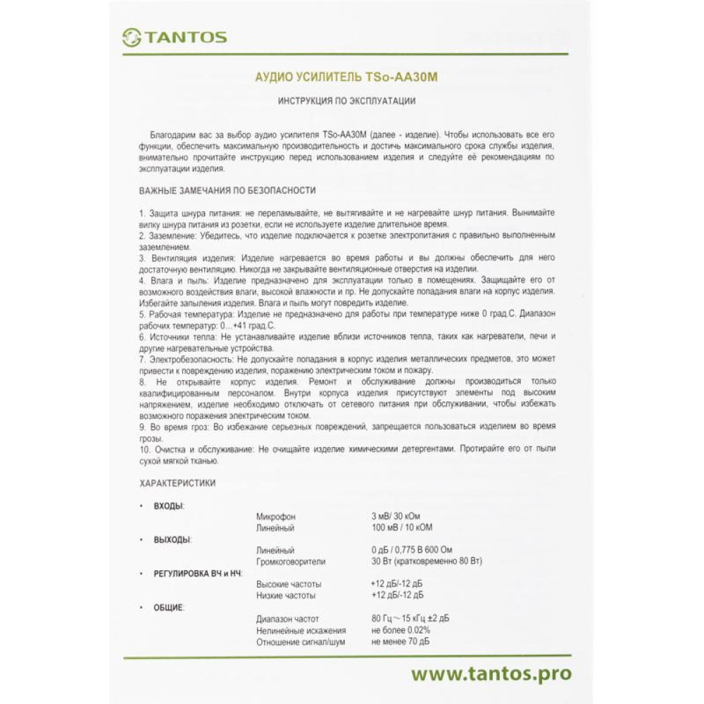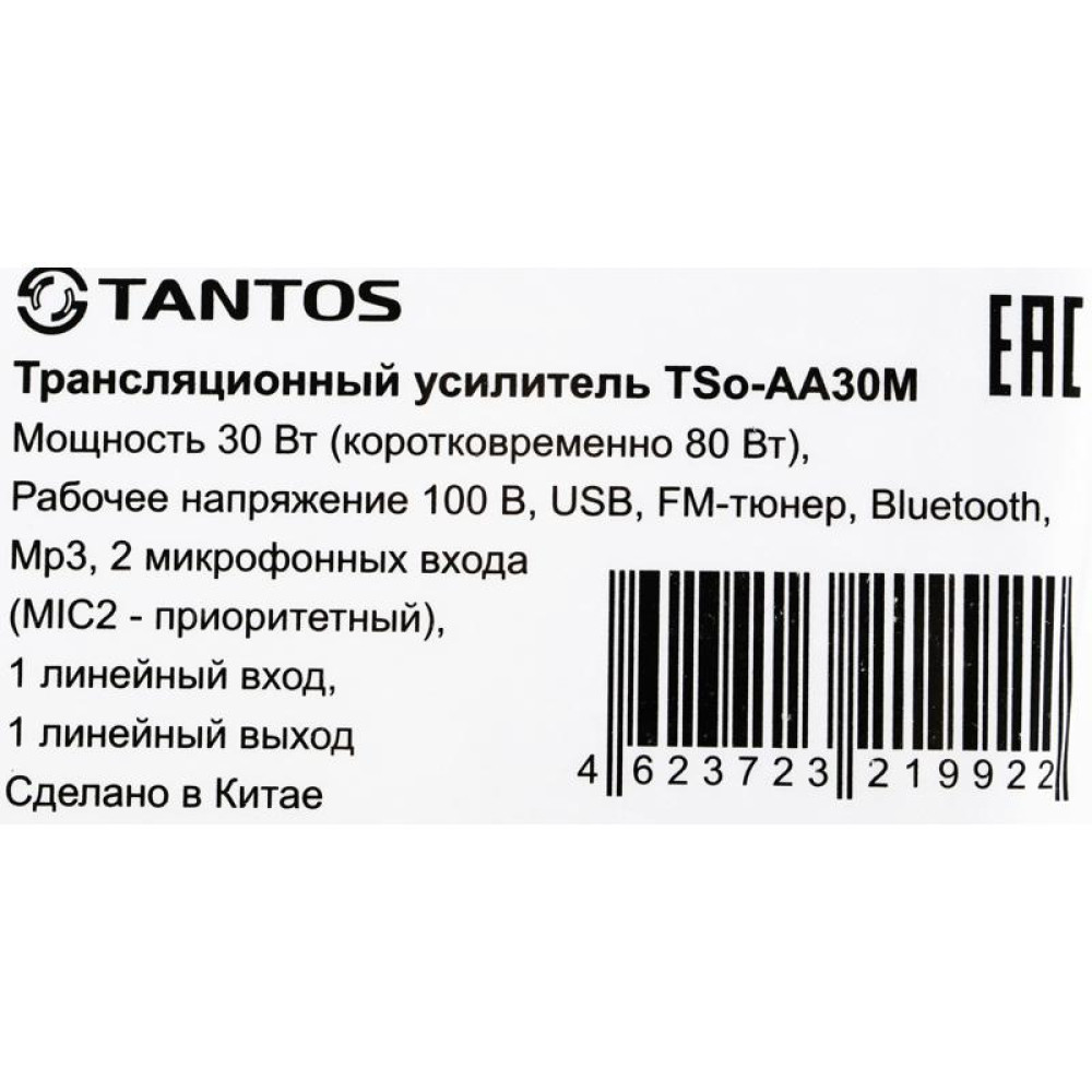 Усилитель Tantos TSo-AA30M выход 100Вт / 30Вт (00-00025068)