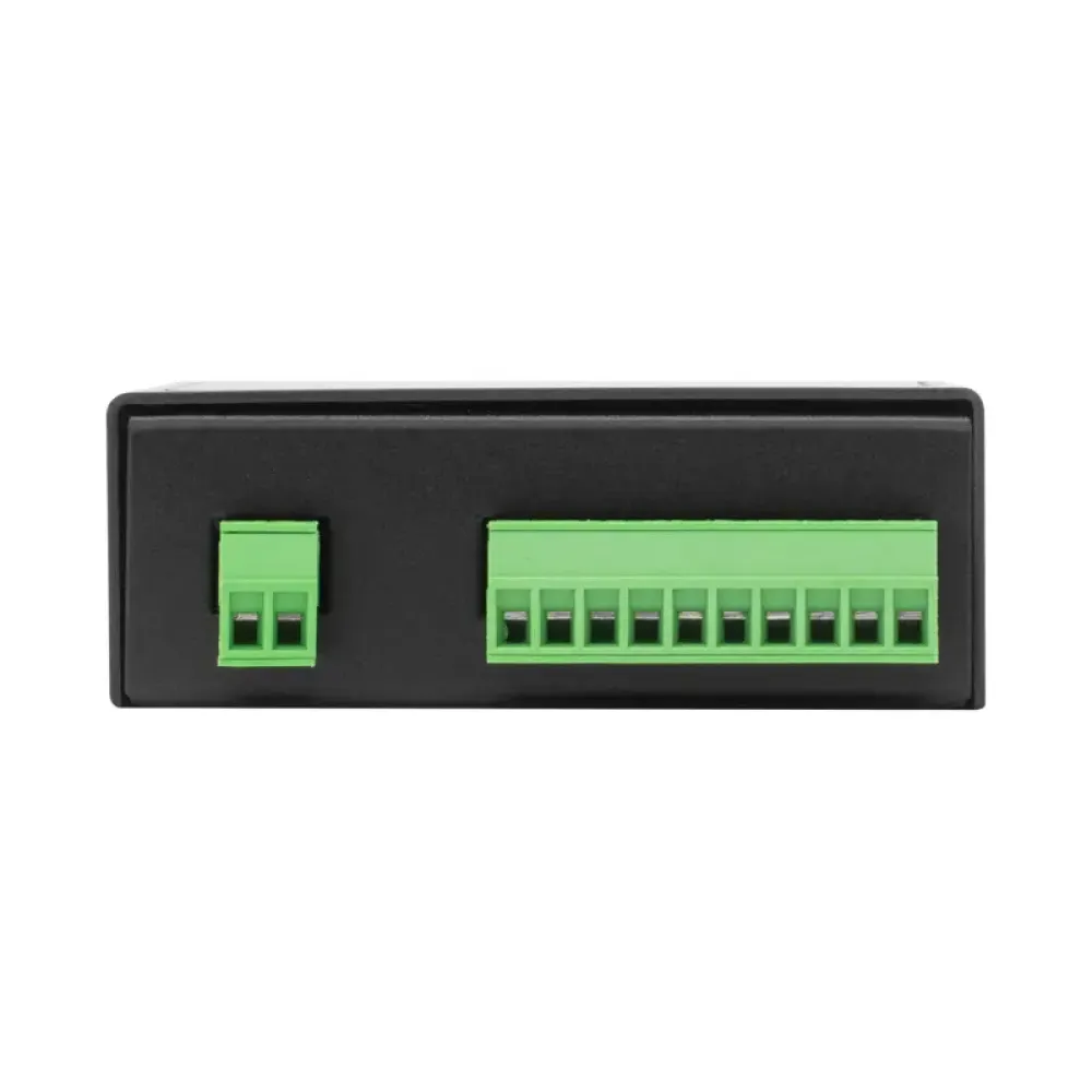 Прочный металлический корпус обеспечивает защиту в промышленных условиях. Устройство рассчитано на круглосуточную работу в расширенном диапазоне температур. Крепление на DIN-рейку упрощает монтаж и повышает надёжность установки.
