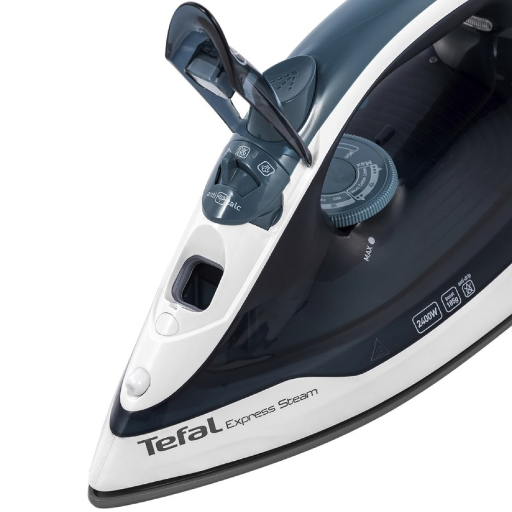 Tefal Express Steam FV2839E0 – функциональный утюг, заключённый в стильный и яркий корпус. Модель не только позволит погладить одежду и постельное бельё на доске, но и быстро отпарить шторы или платья со сложной отделкой вертикально.