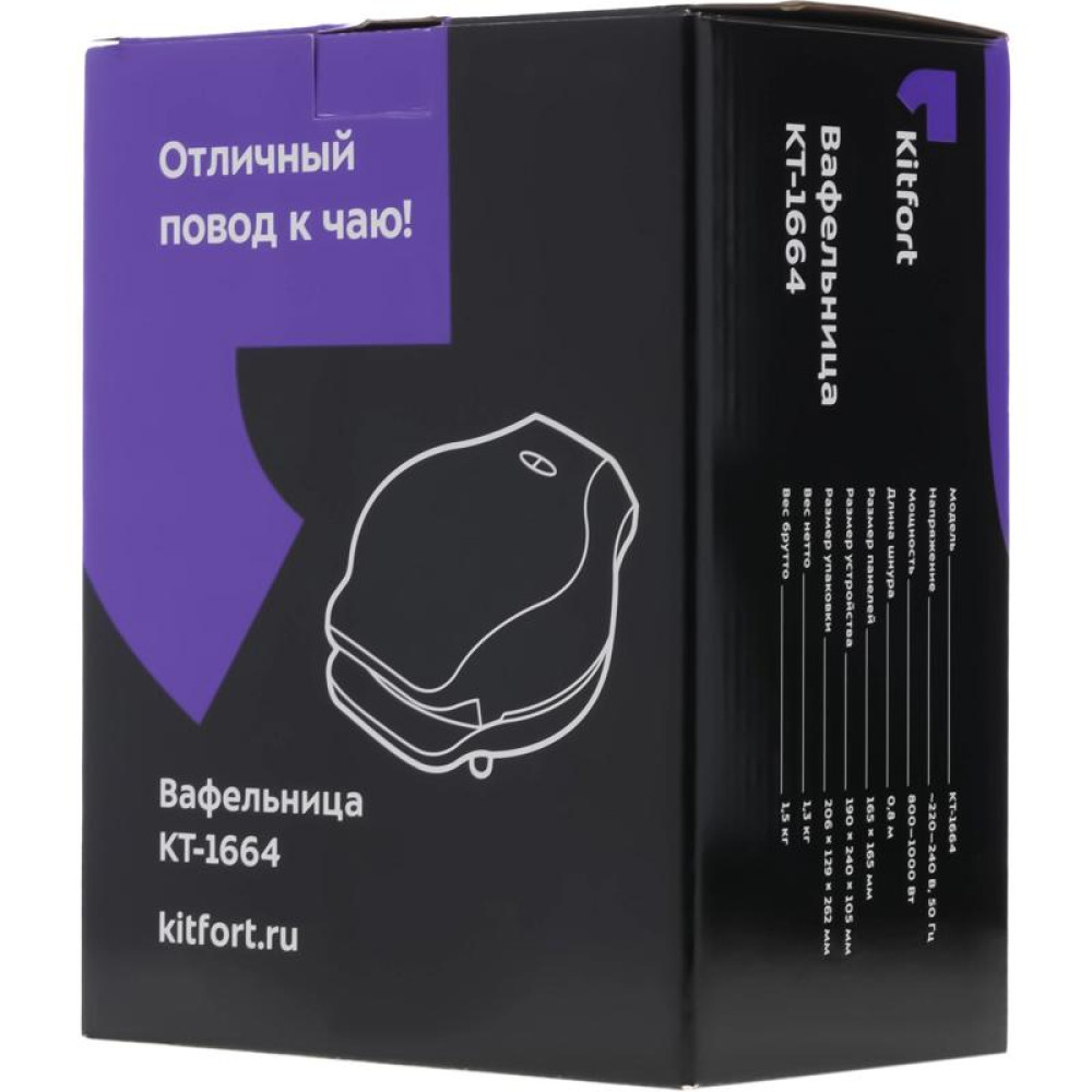 Вафельница Kitfort КТ-1664 1000Вт черный